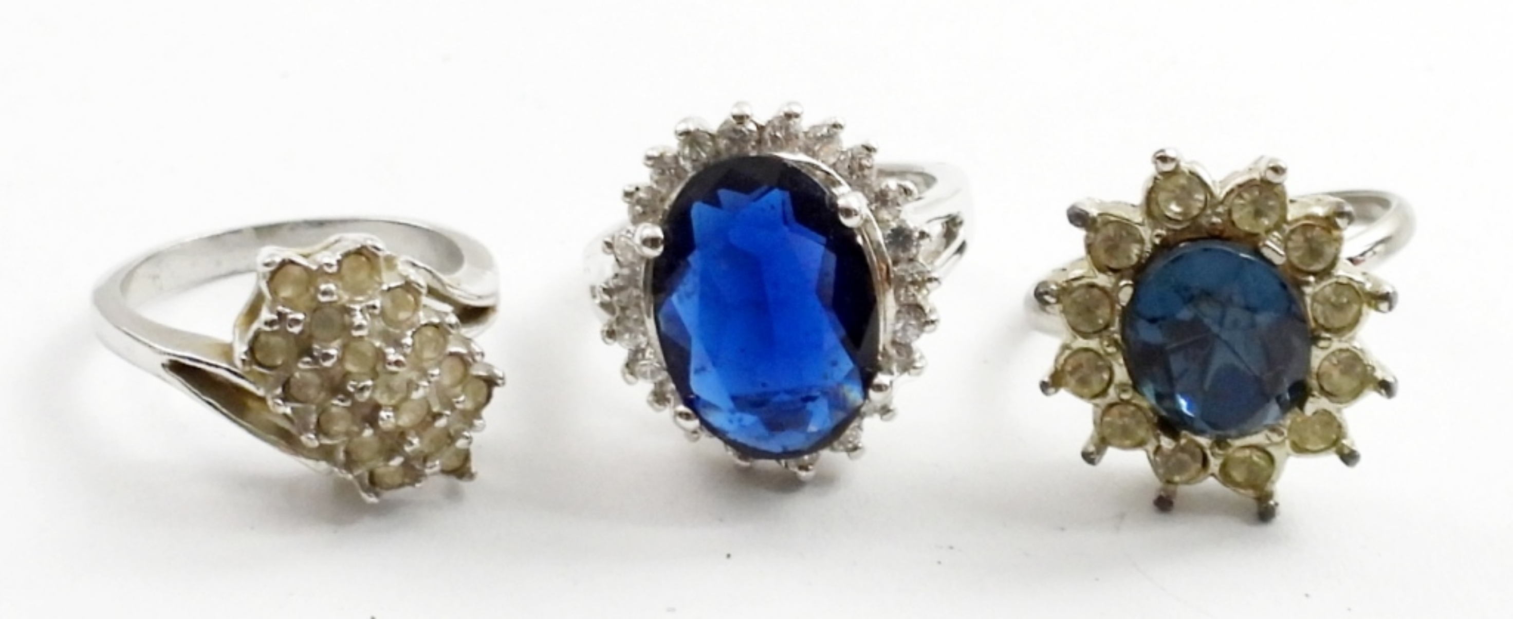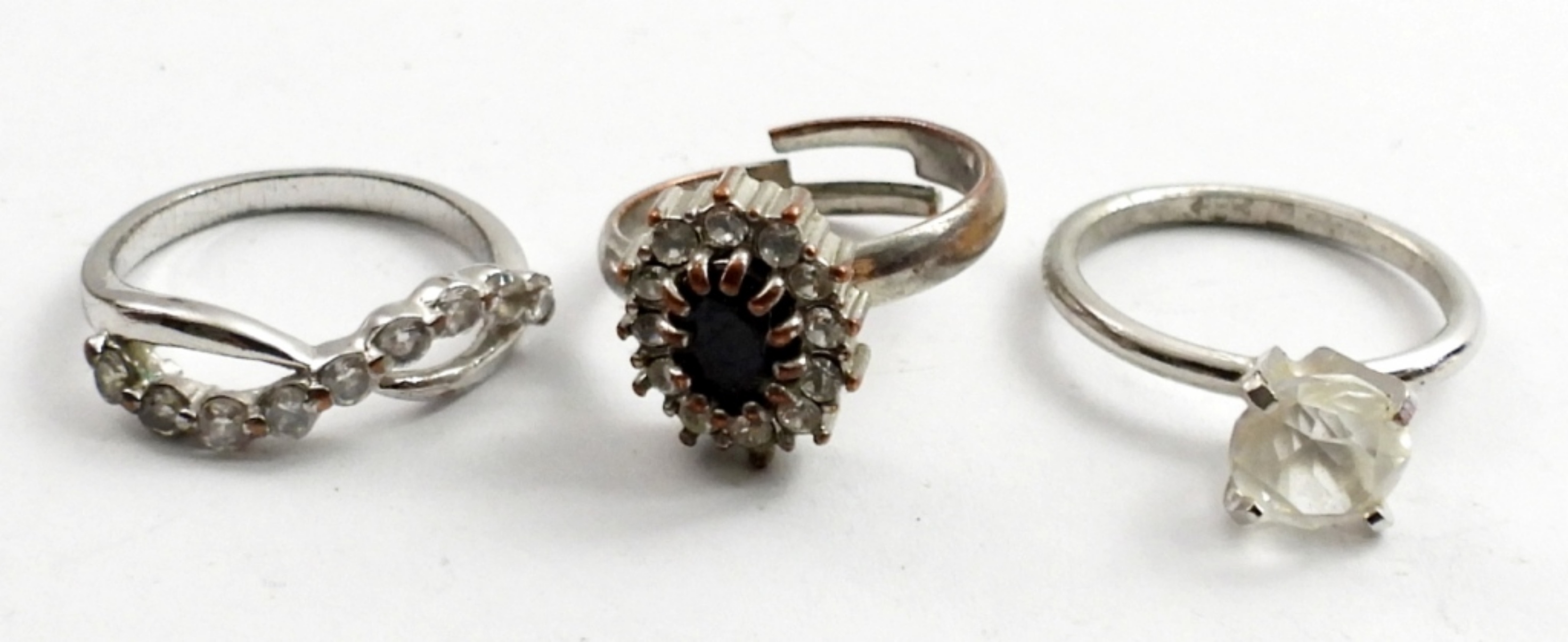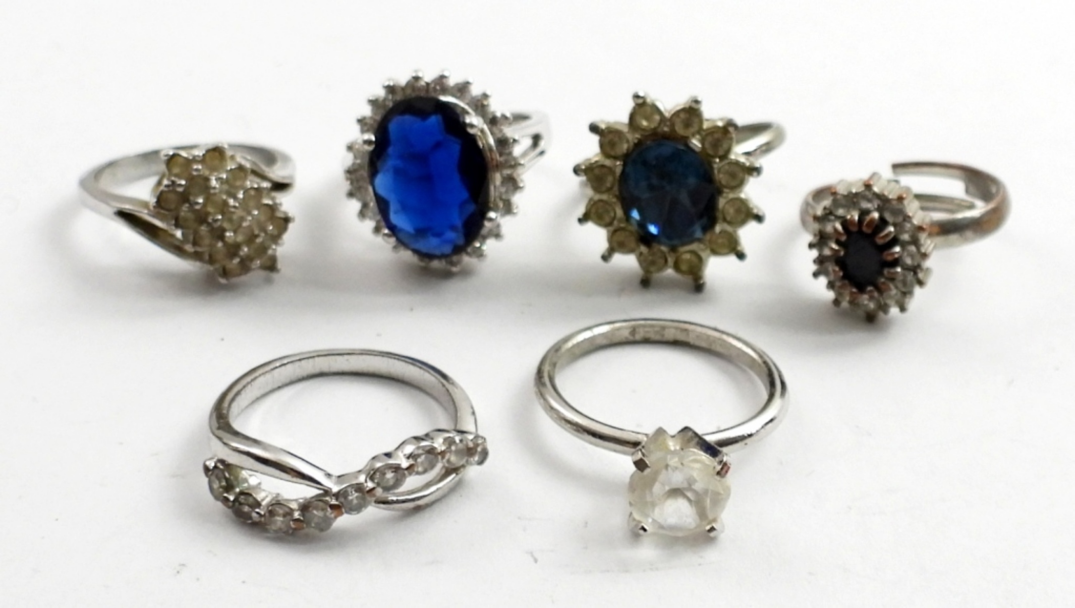 6 SILVER TONE ASSORTED STONE FASHION RINGS .SIZES 6 &7