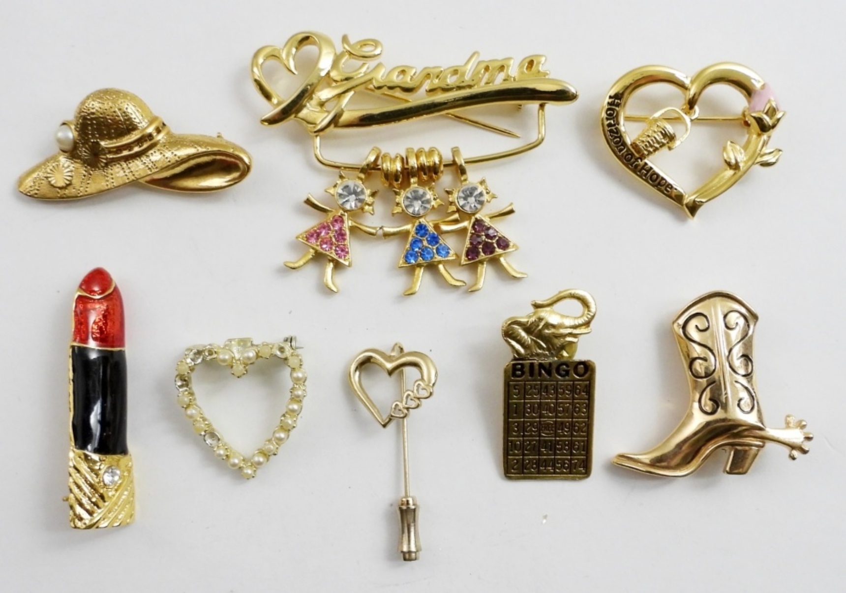 (8) GOLD TONE WOMEN'S LOT OF BROOCHES