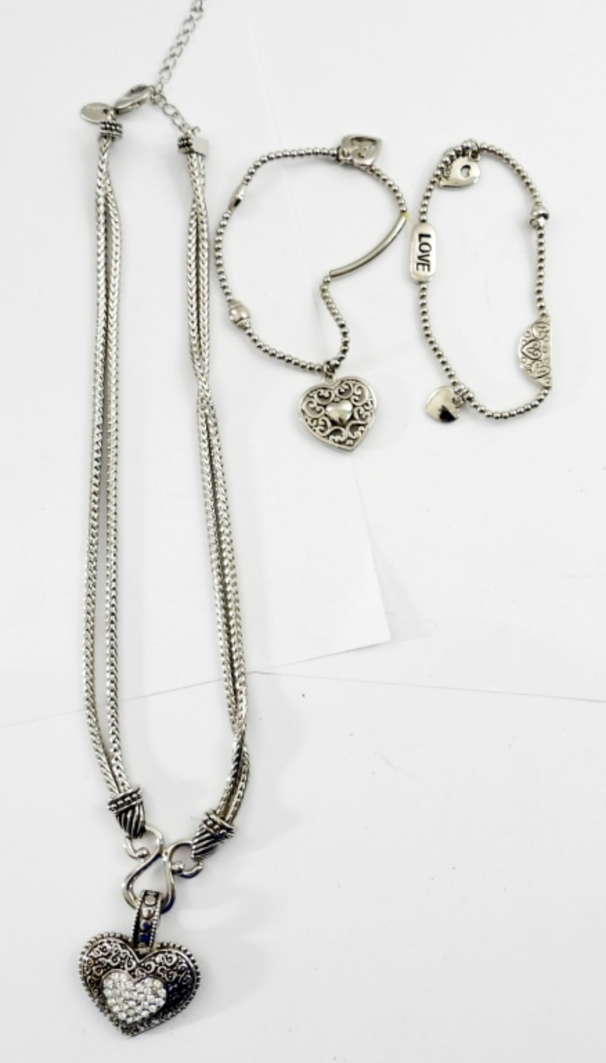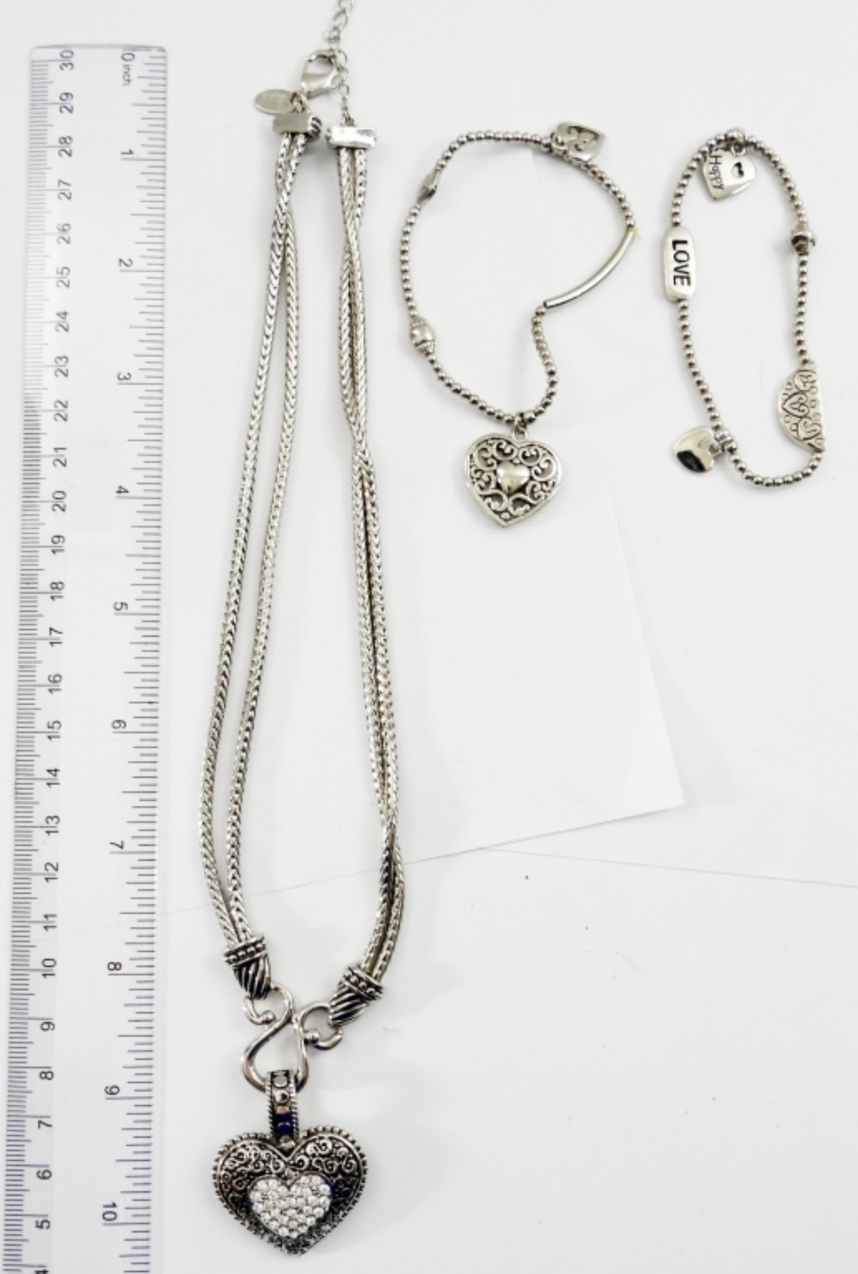 SILVER TONE 20in LONG BRACELET 6in STUNNING HEART PENDENTS
