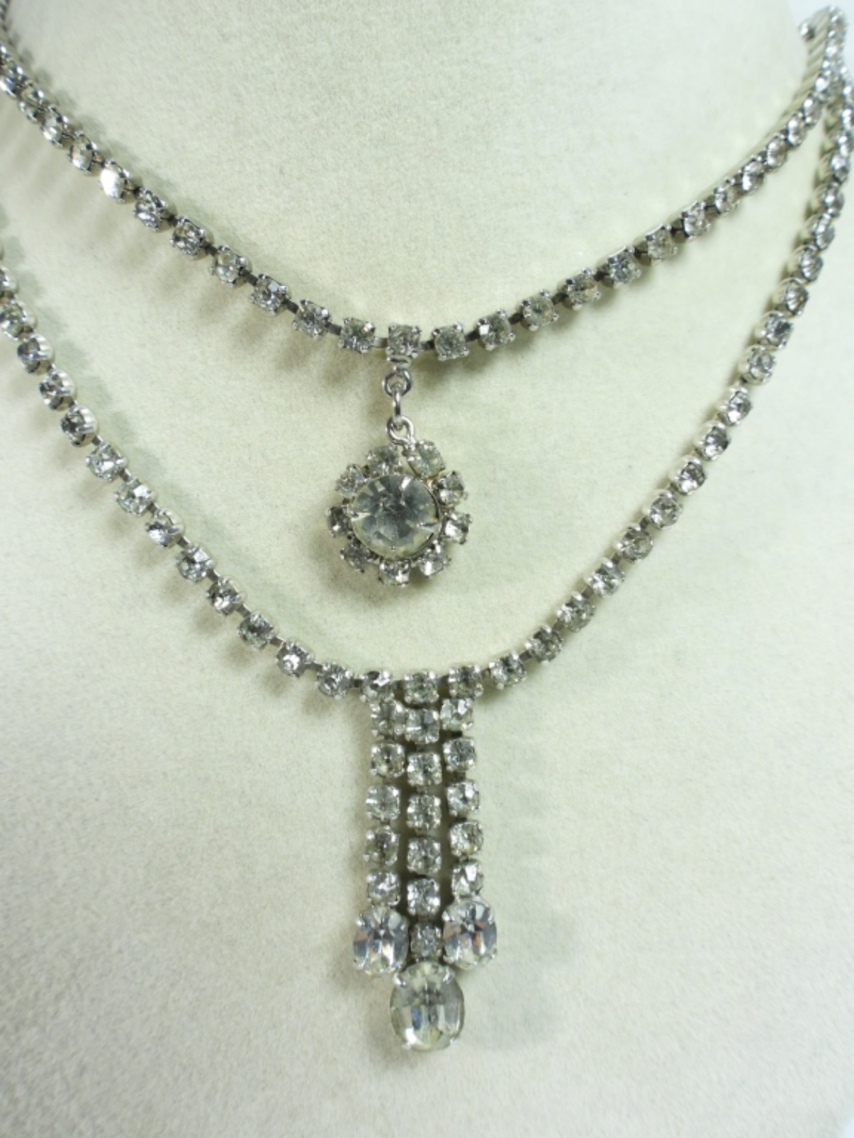(2) NECKLACES 14″-15″ (1) need clasp repair & STRETCH BRACELET