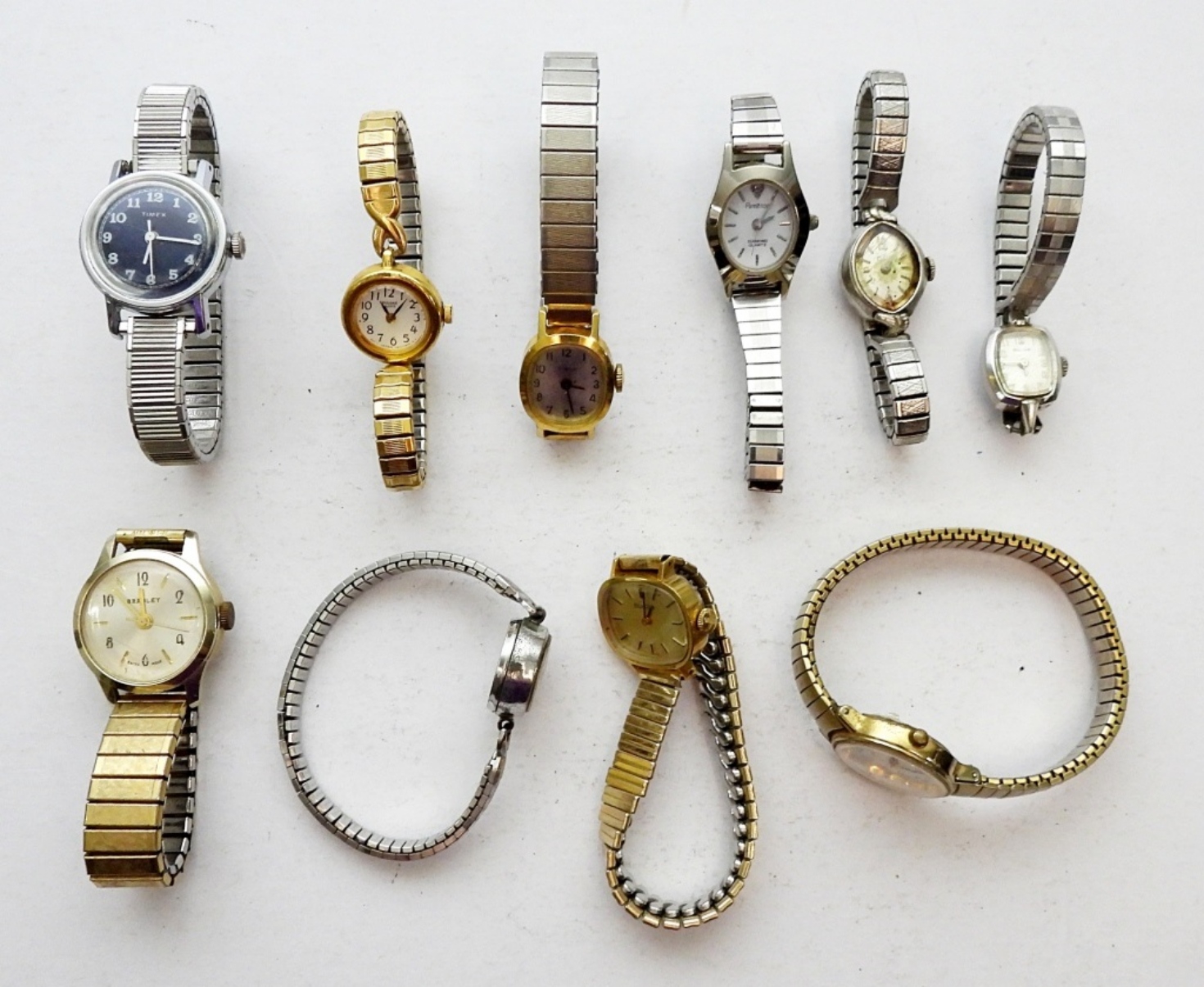 STRETCHY BAND LADIES WATCHES – SLIM, GOLD & SILVER TONE – ALL DIFFERENT BRANDS UNTESTED / UNVERIFIED