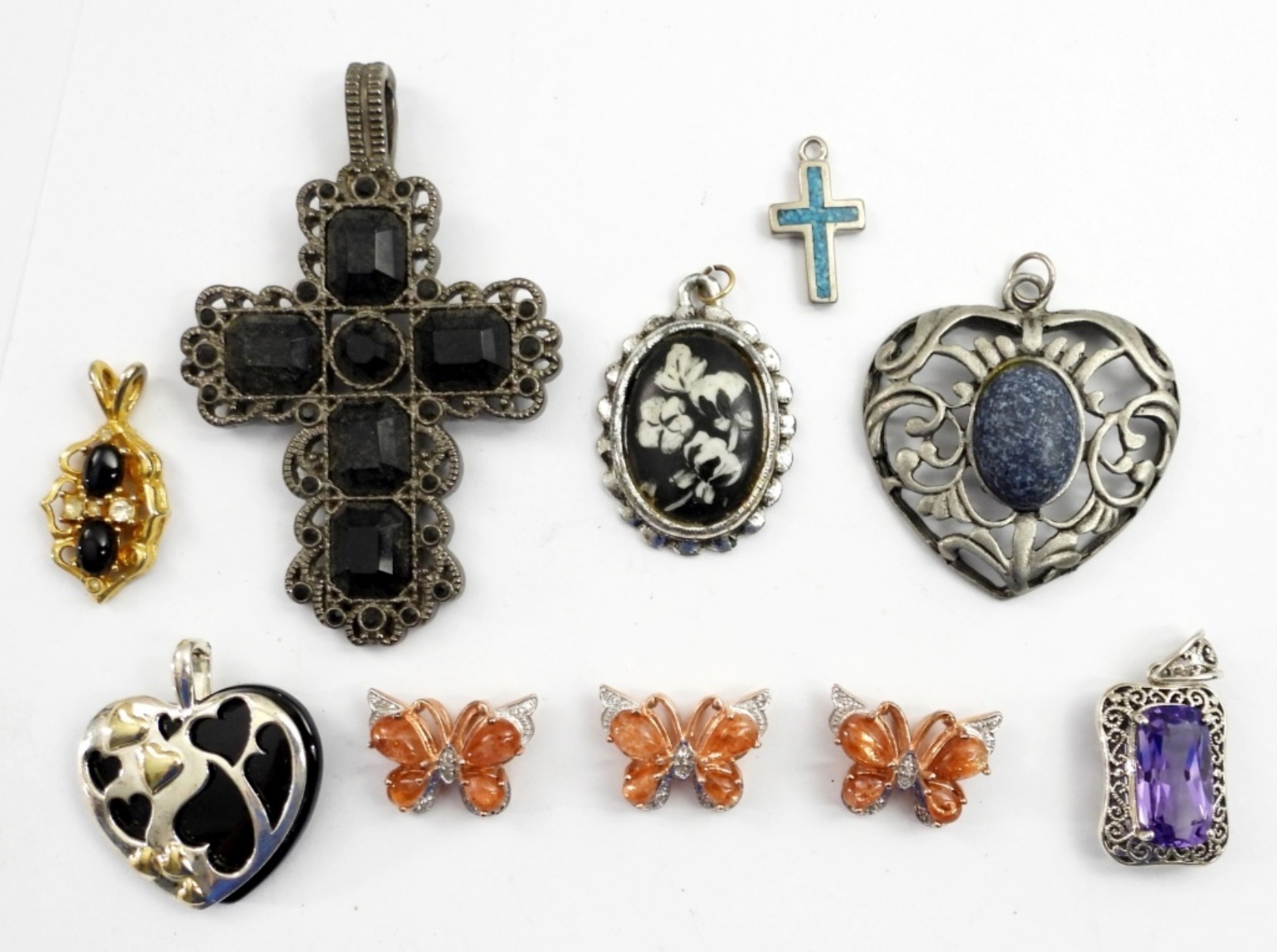 10 ASSORTED VINTAGE PENDANTS WITH VARIOUS RHINESTONES
