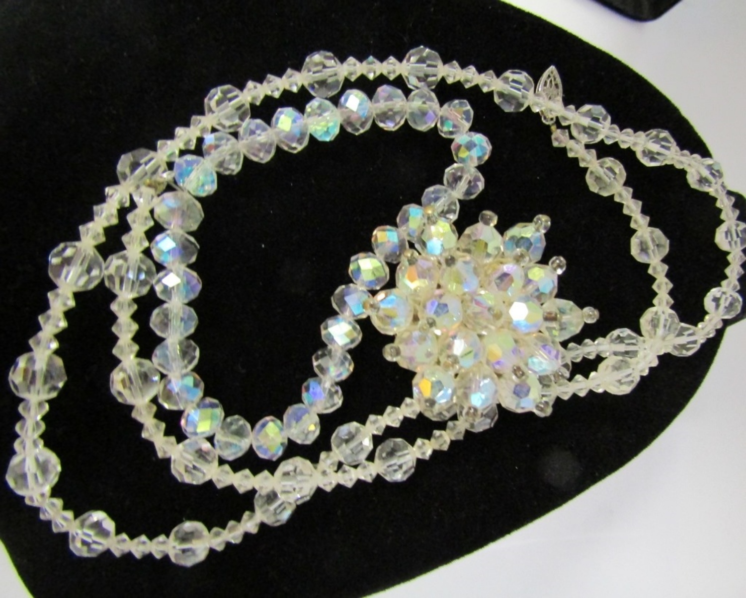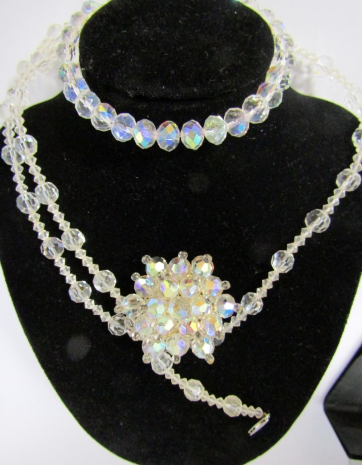 VINTAGE CRYSTAL NECKLACE (24″), VINTAGE CRYSTAL BRACELET (7″). VINTAGE CRYSTAL BROOCH.