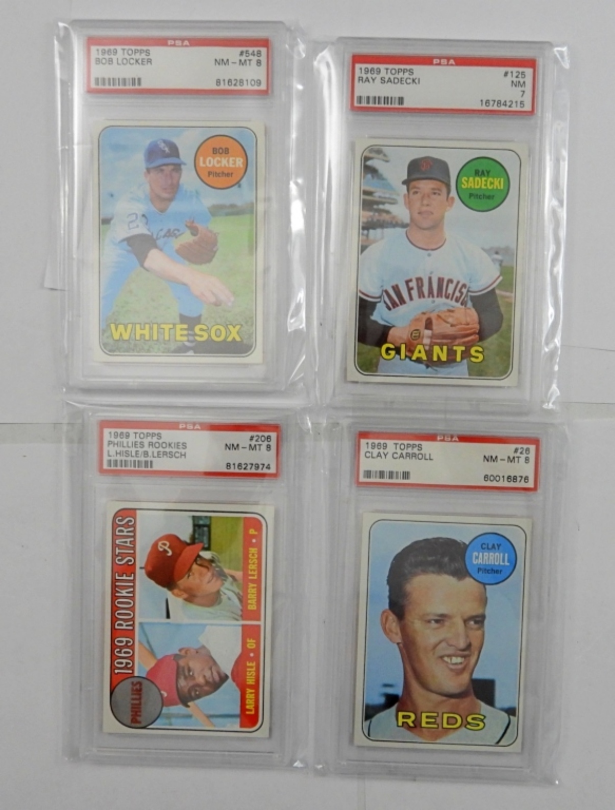 RAY SADECKI #125 NM 7, BOB LOCKER #548 NM-MT 8, PHILIES ROIKIES #206 NM-MT 8 CLAY CARROLL #26 NM-MT 8