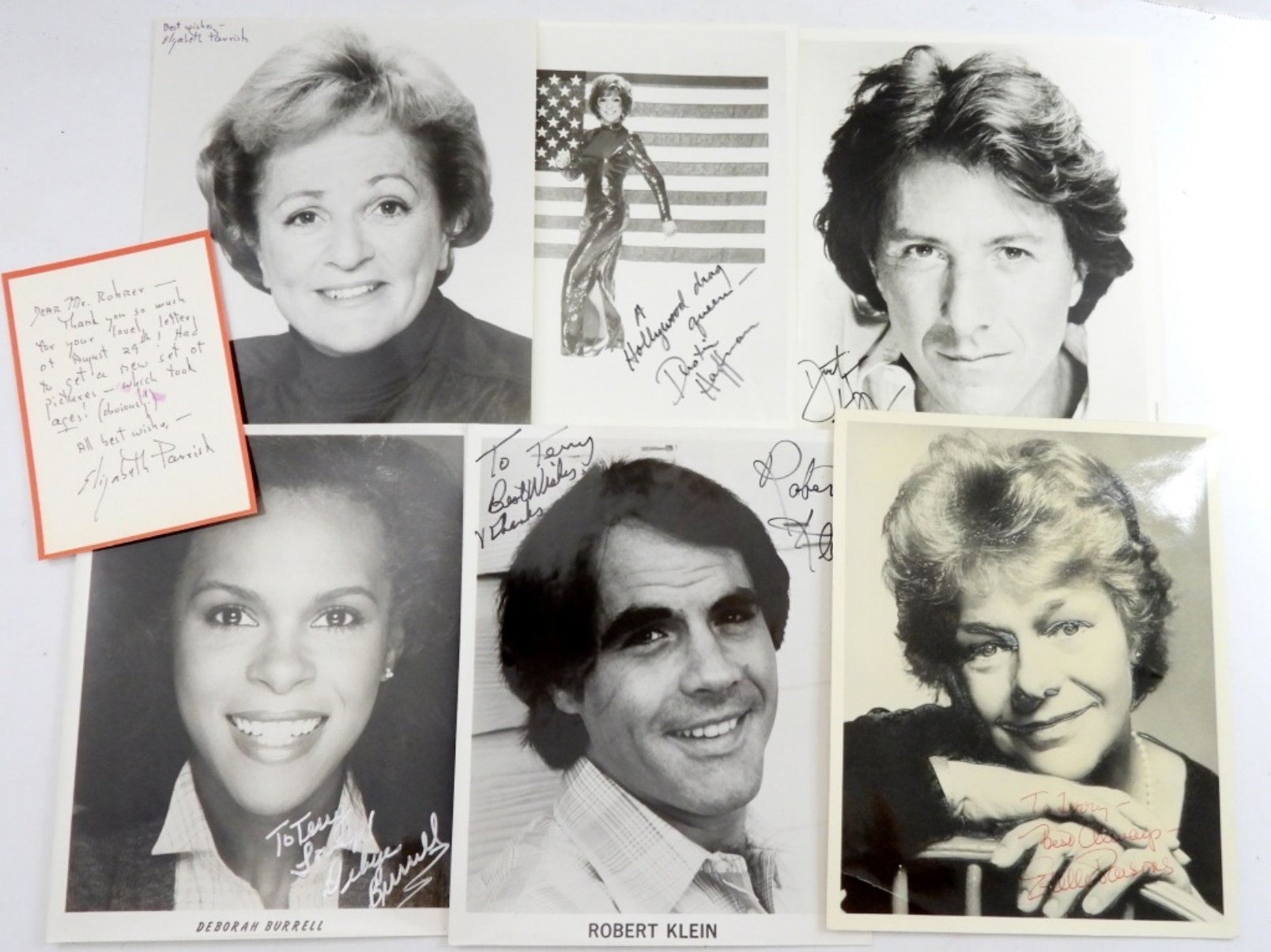 2 SIGNED 8X10 DUSTIN HOFFMAN HEADSHOTS,8X10 PERSONALIZED AUTOGRAOHED DEBORAH BURRELL HEADSHOT,8X10 SIGNED ROBERT KLEIN HEADSHOT, ESTELLA PARSONS AUTOGRAPHED 8X10 HEADSHOT, ELIZABETH PARRISH SIGNED 8X10 HEADSHOT AND