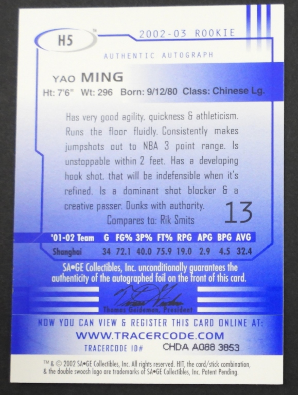 2002-03 SIGNED ROOKIE CARD. 27/250. WITH TRACER CODE. NM