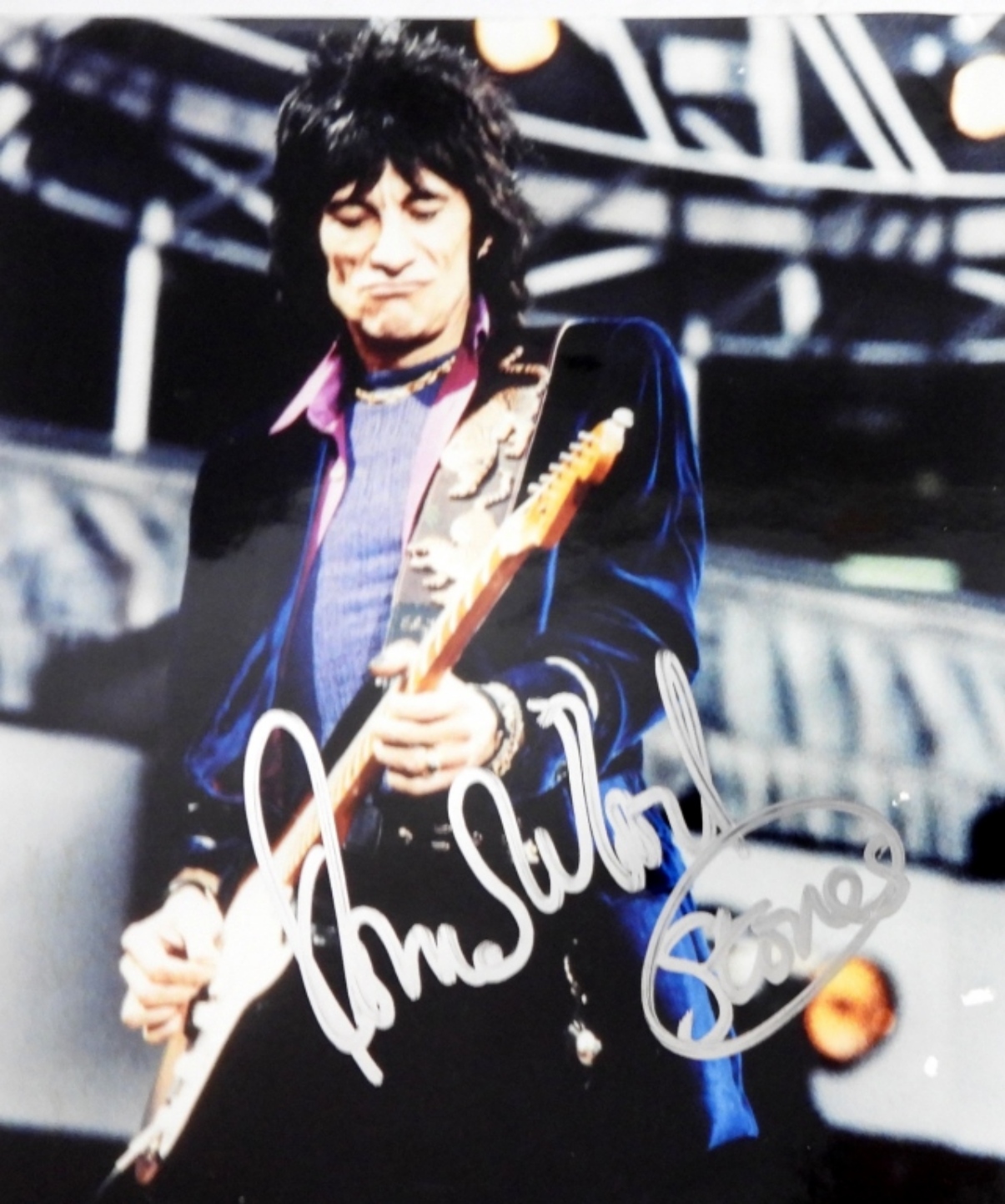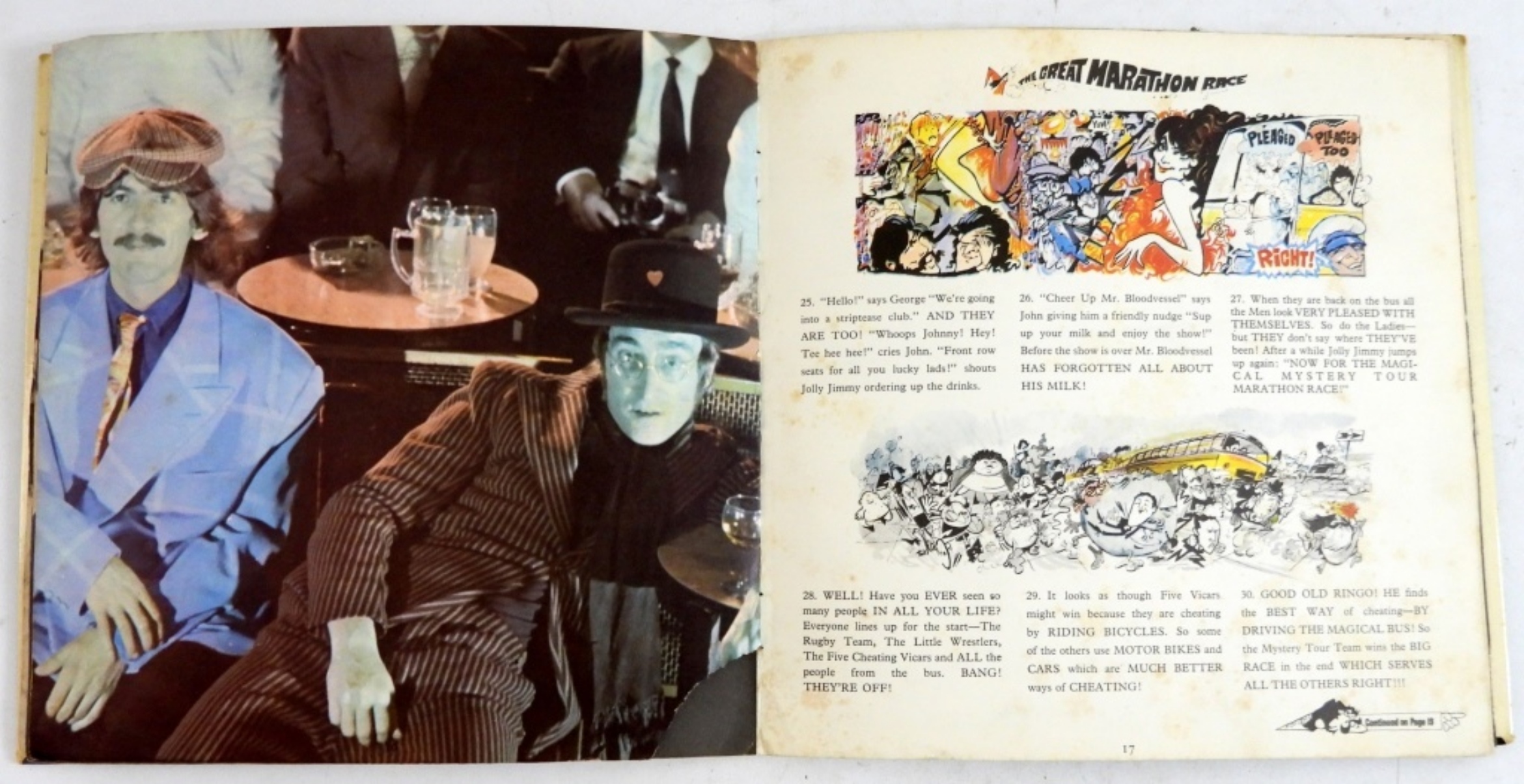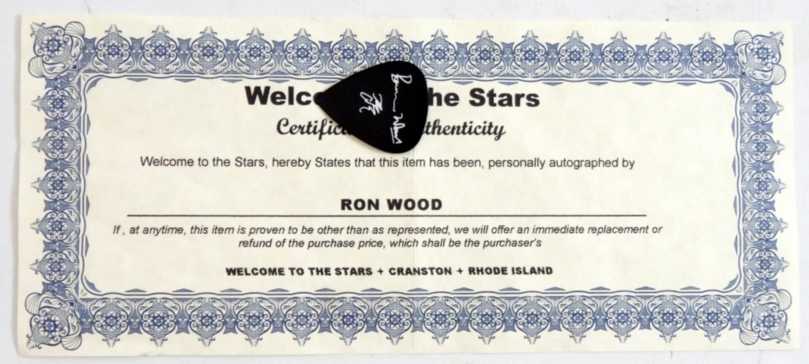 1967 BEATLES “MAGICAL MYSTERY TOUR” 45 RECORDS (2 RECORDS INSIDE) IN THE ORIGNAL ALBUM BOOK (MISSING 6 PAGES 11-16.). RON WOOD SIGNED GUITAR PICK WITH COA & AUTOGRAPHED PHOTO (NO COA).
