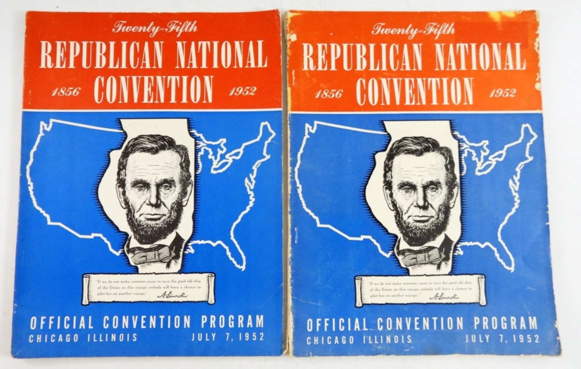 2 HISTORICAL 1952 REPUBLICAN NATIONAL CONVENTION PROGRAM WITH LINCOLN ON THE COVER