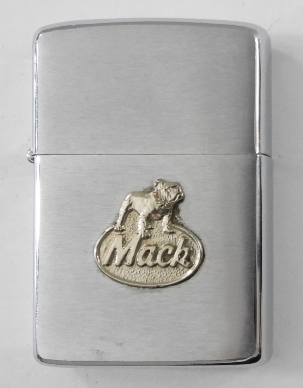 1968 ZIPPO LIGHTER WITH A MACK LOGO ON THE FRONT,FIRED