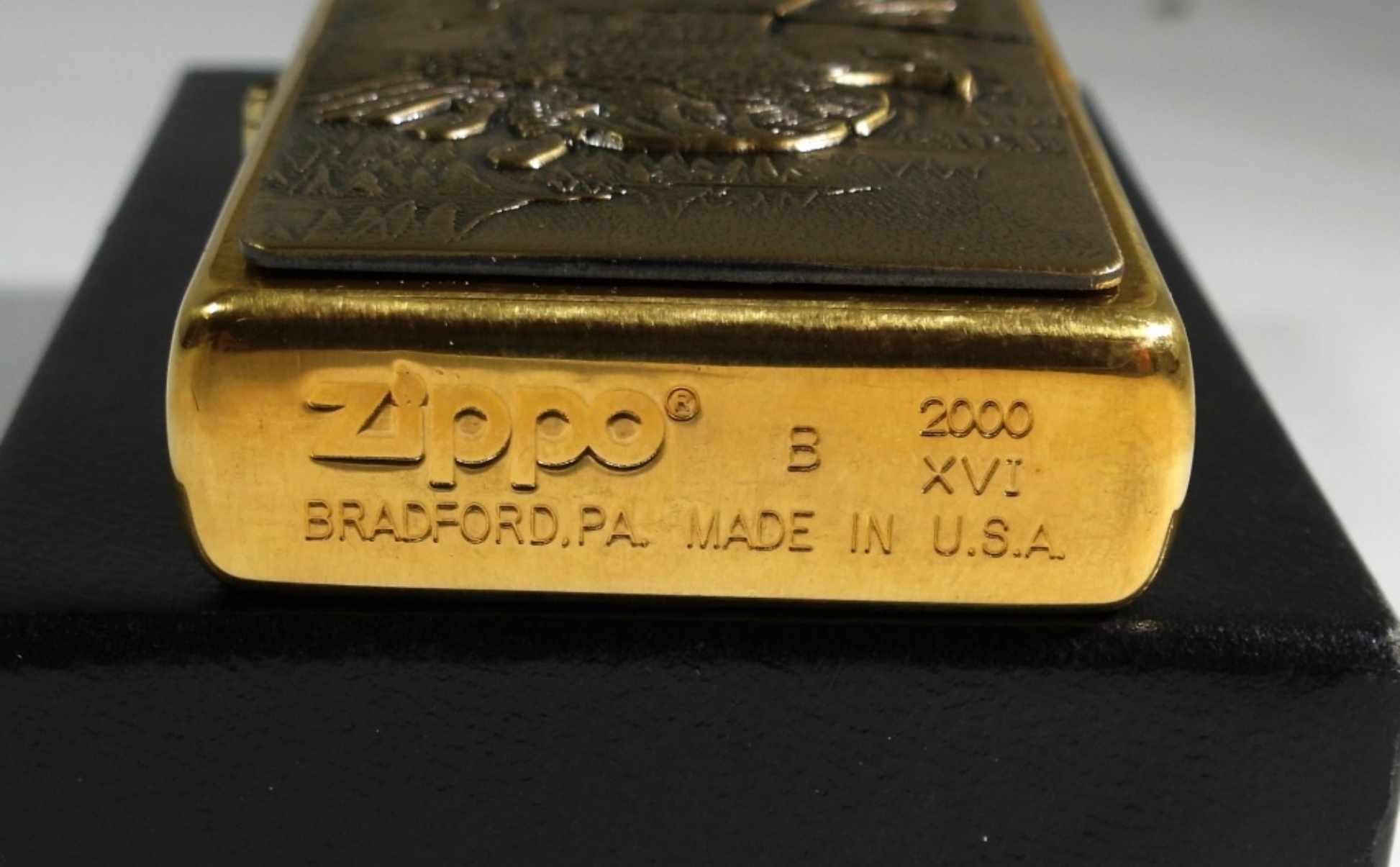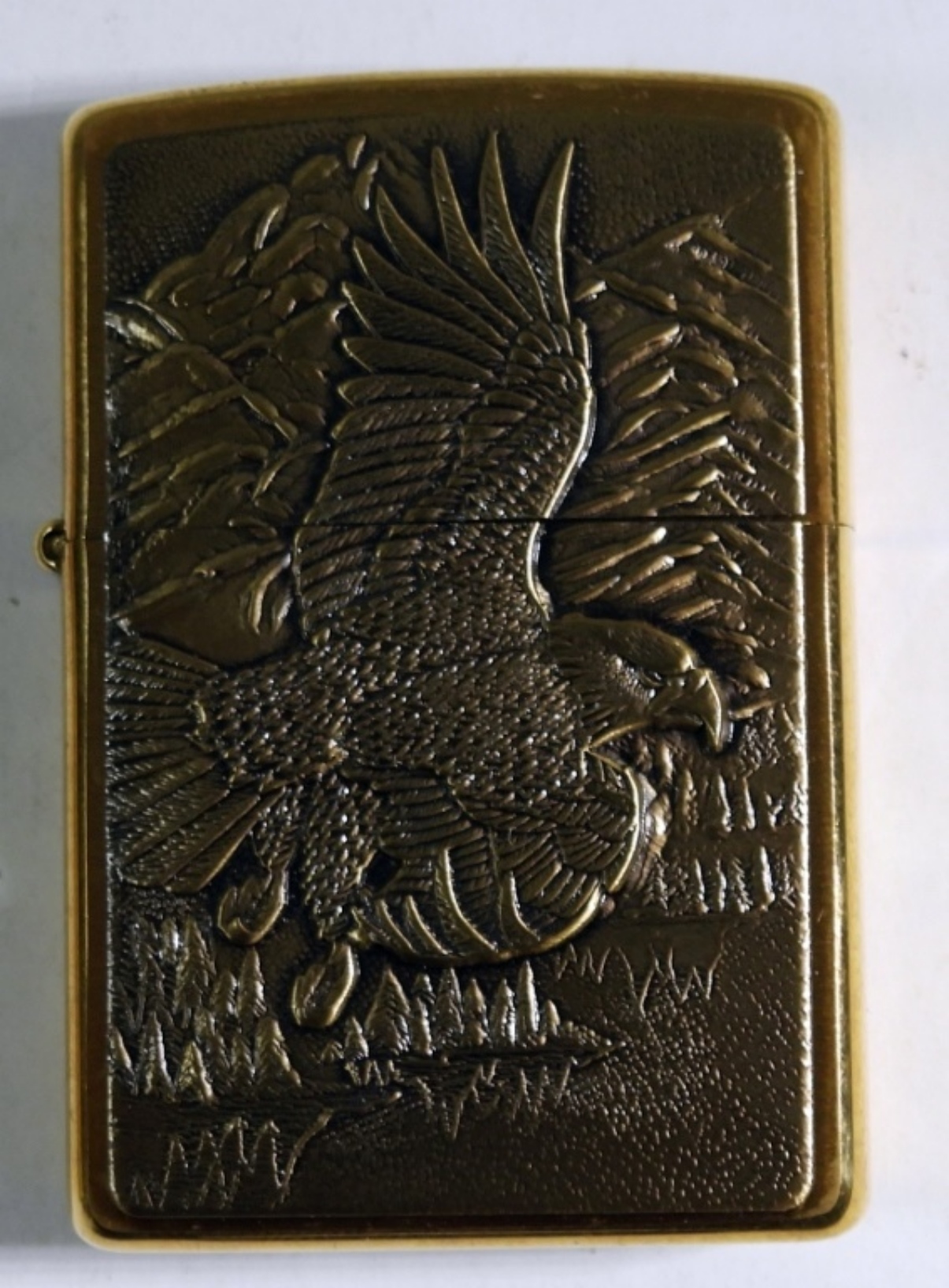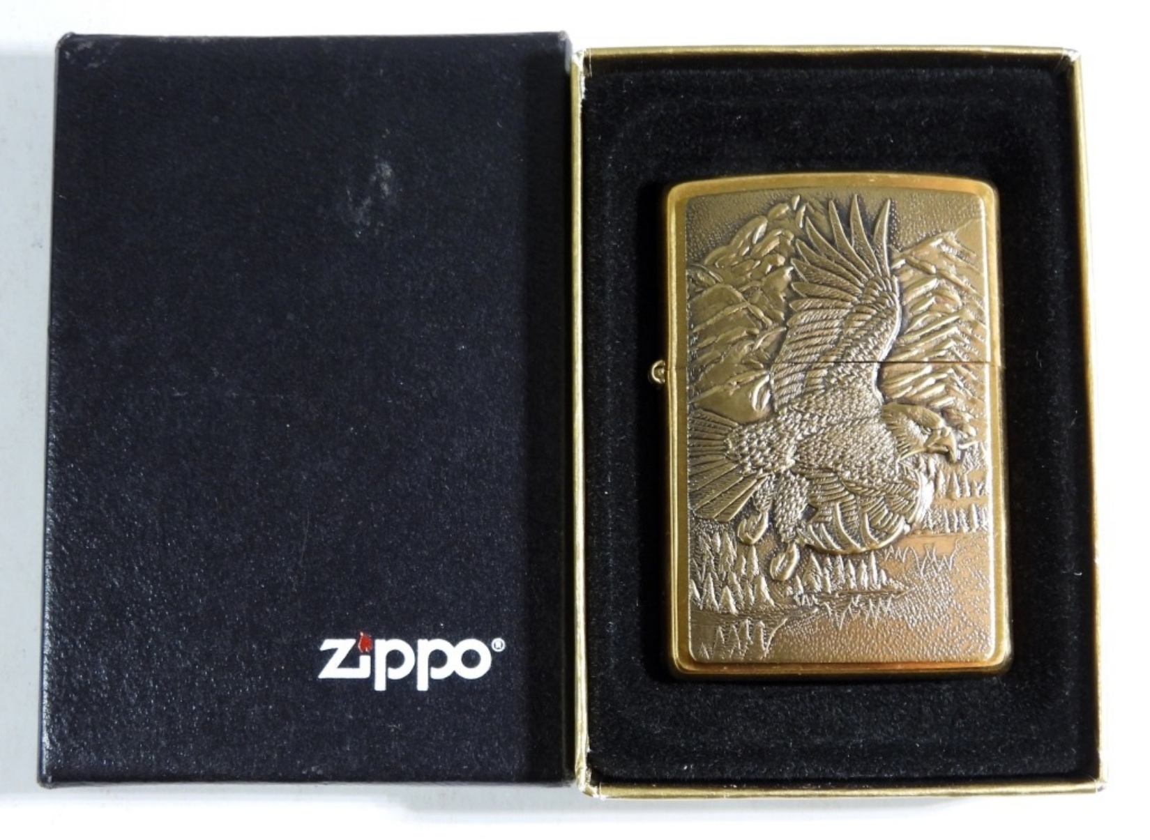2000 SEALED ZIPPO BRASS,ENGRAVED SOARING EAGLE EMBLEM.IN ORIGINAL BOX