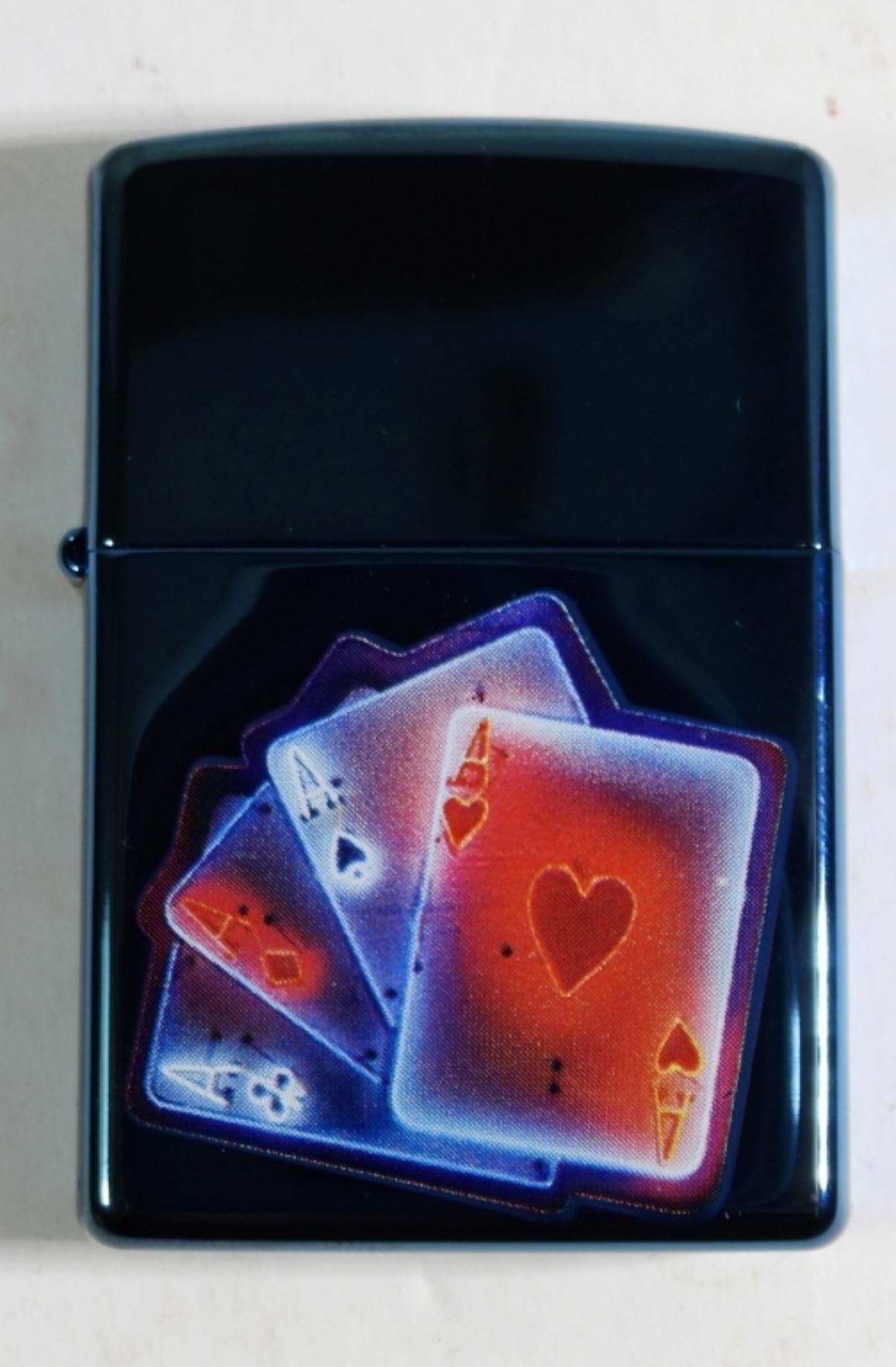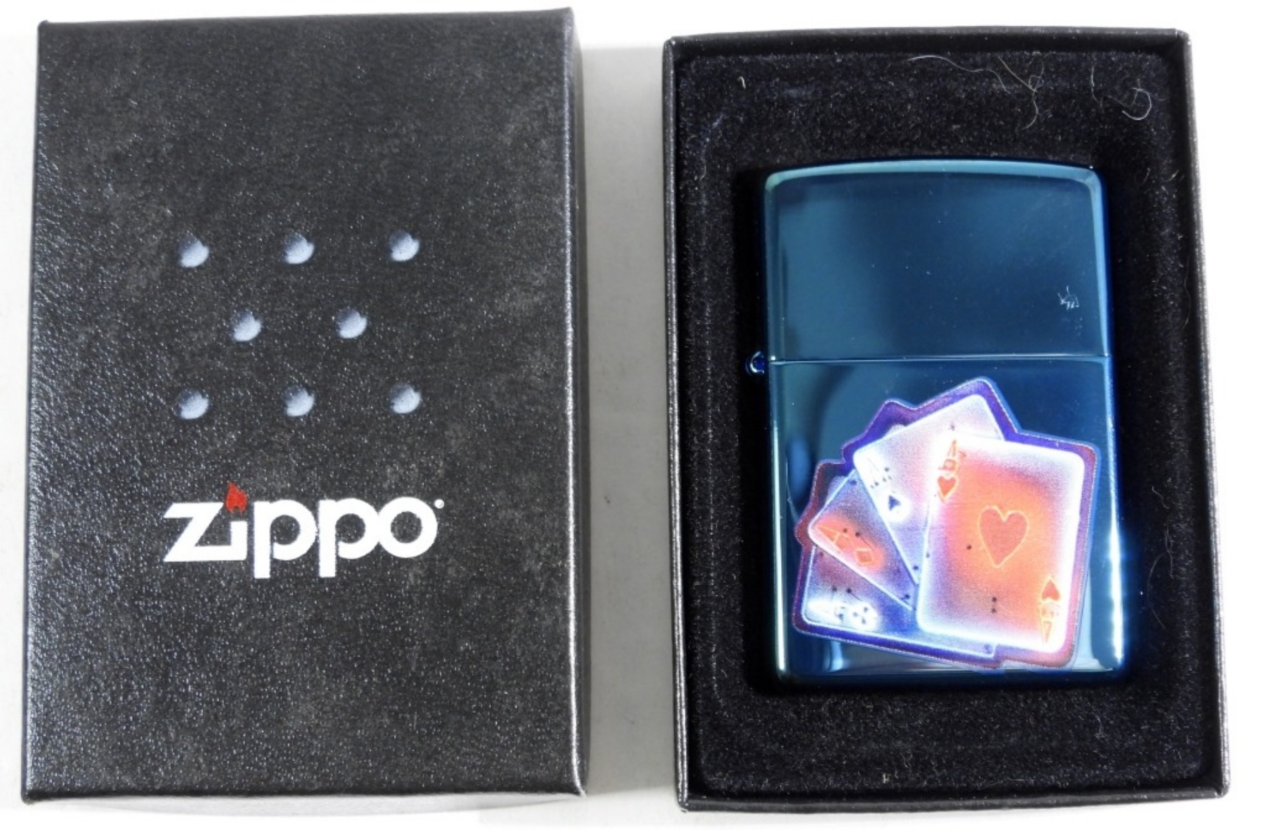 2005 SEALED AND UNFIRED 4 ACES POKER CARD BLUE CHROME ZIPPO