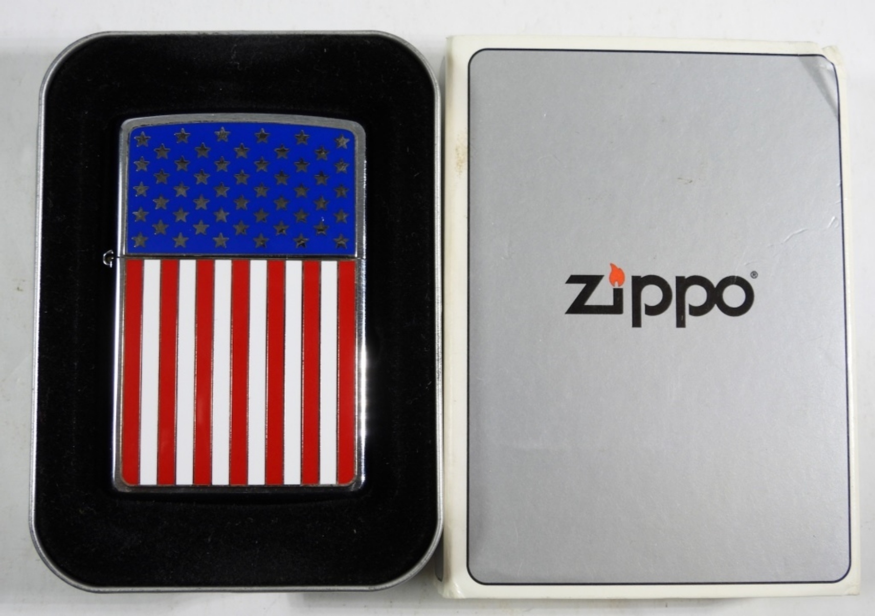 2003 AMERICAN FLAD SEALED/UNFIRED ZIPPO IN A TIN CASE
