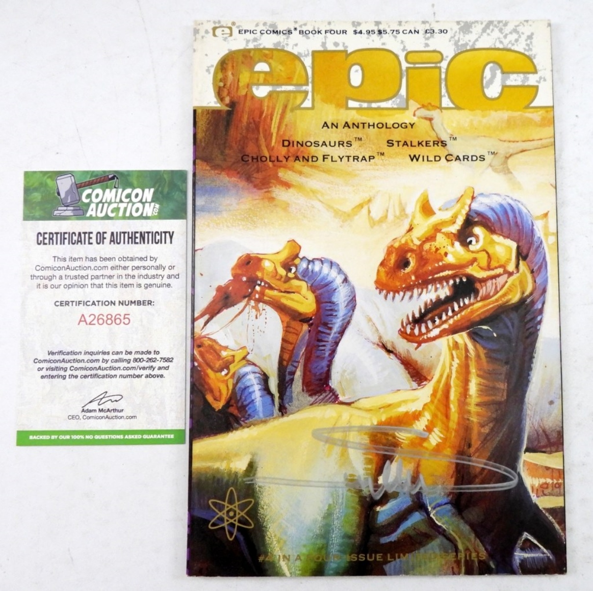 EPIC COMICS-BOOK FOUR-AN ANTHOLOGY DINOSAURS, STALKERS, CHOLLY & FLYTRAP, WILD CARDS. AUTOGRAPHED WITH A COA. CERT # A26865. VF/NM