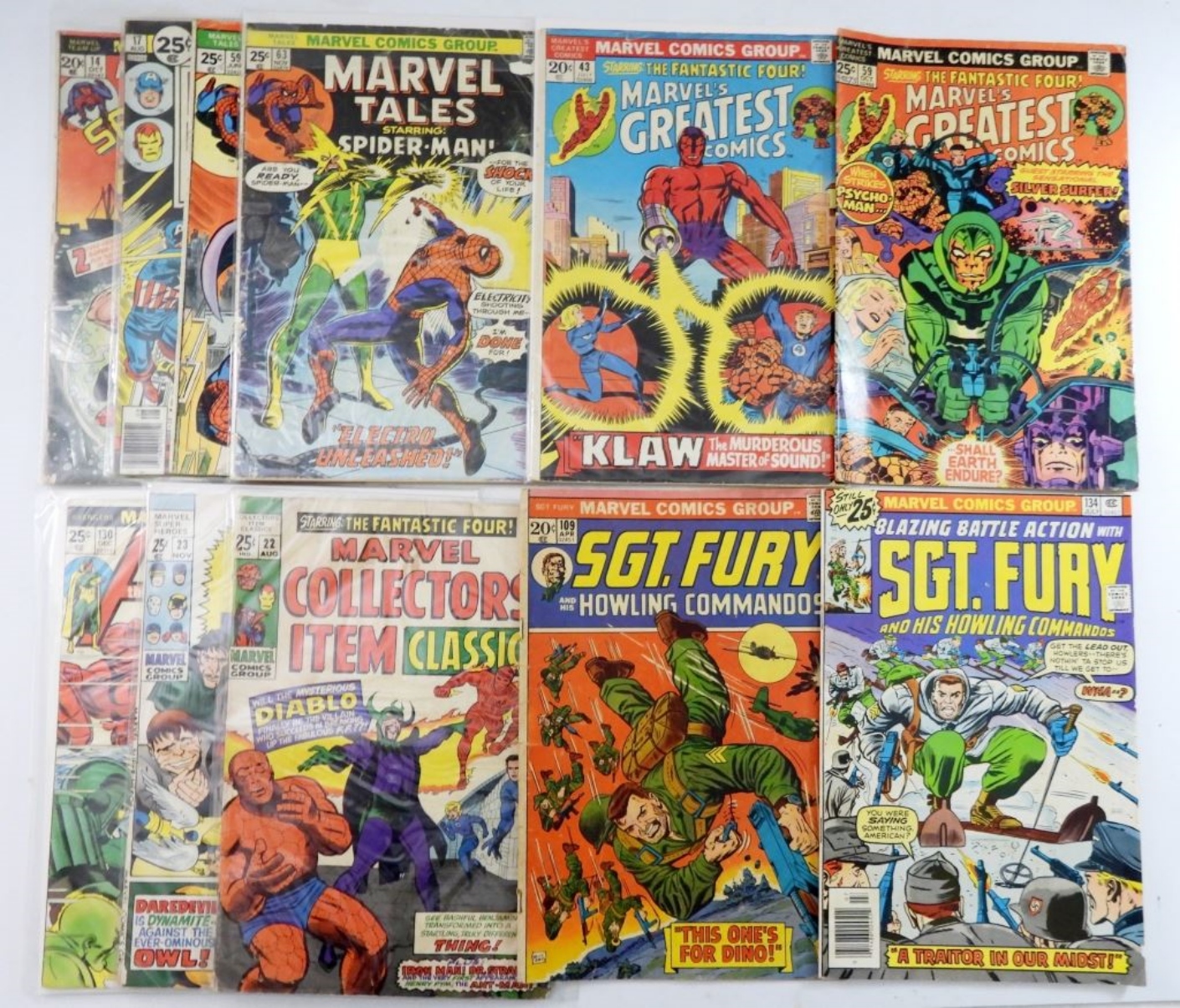 ALL MARVEL. 2 SGT FURY #134/#109. MARVEL TALES, MARVEL’S GREATEST, COLLECTORS’ ITEM CLASSICS, MARVEL SUPER HEROES, MARVEL TALES, TEAM UP & DOUBLE FEATURE. FAIR-GOOD