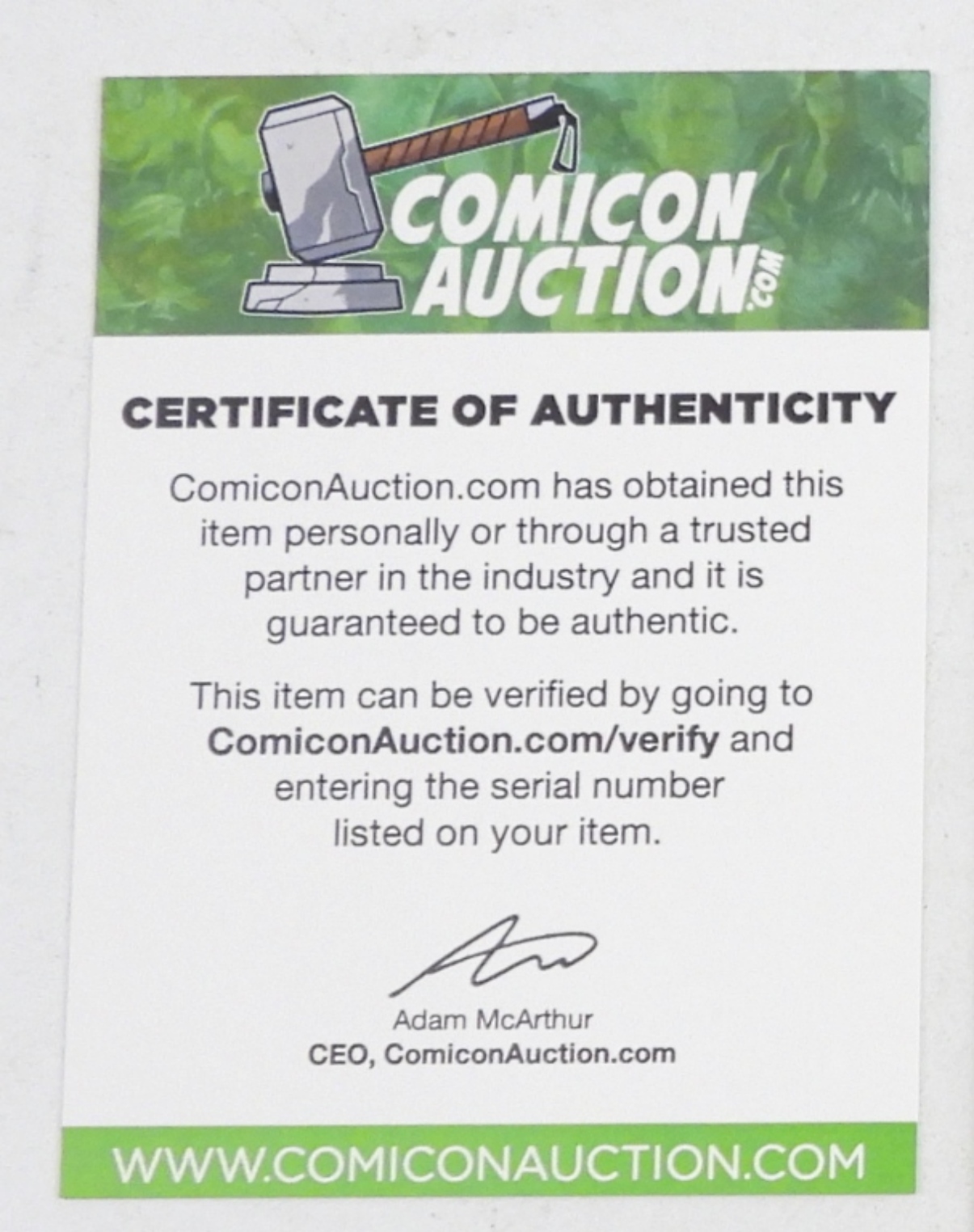CERTIFICATE by COMICON AUCTION – NM/MT