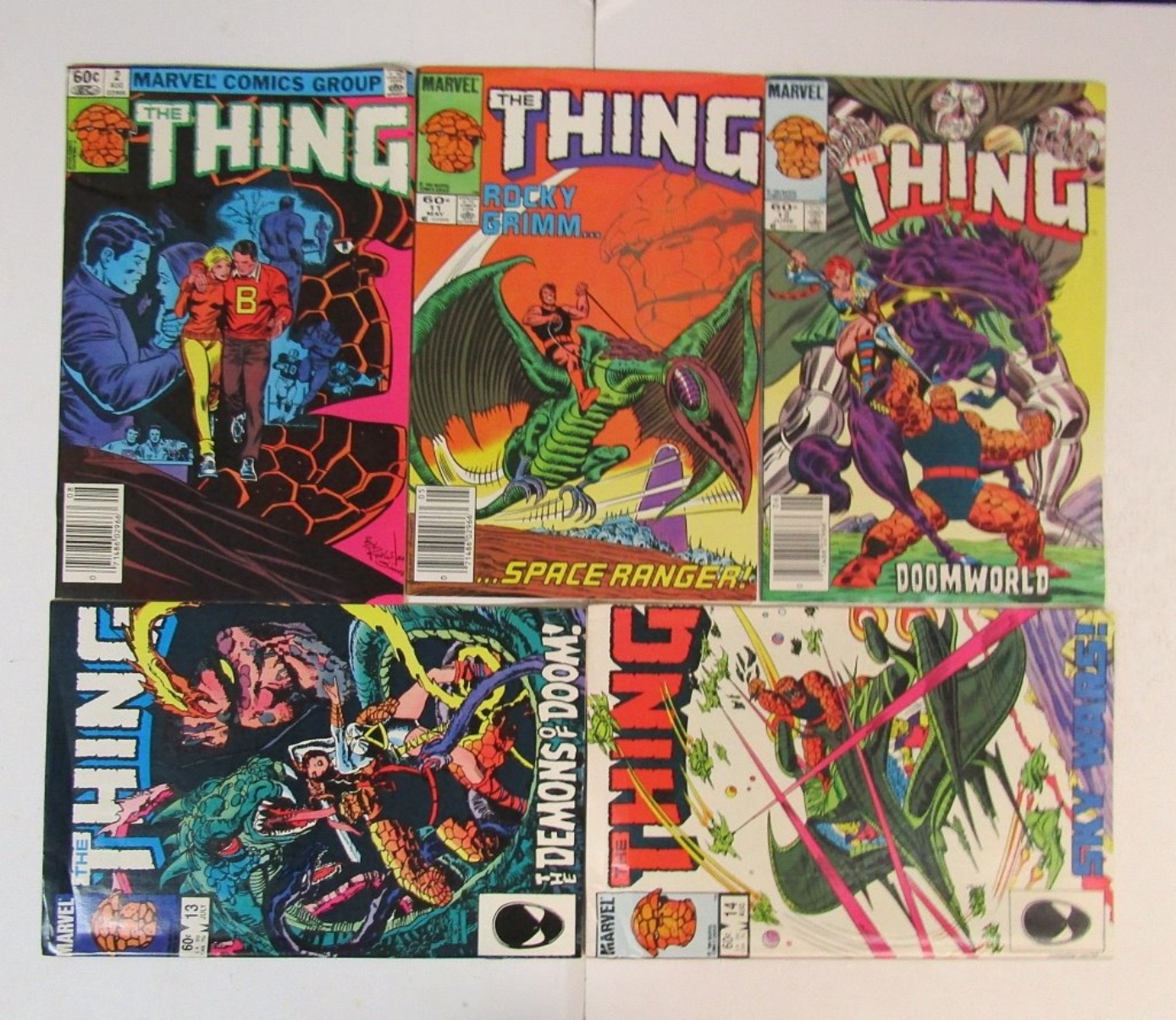 CIRCA 1983 MARVEL COMICS GROUP “THE THING” ISSUES 2, 11, 12, 13, 14. GOOD-VF.