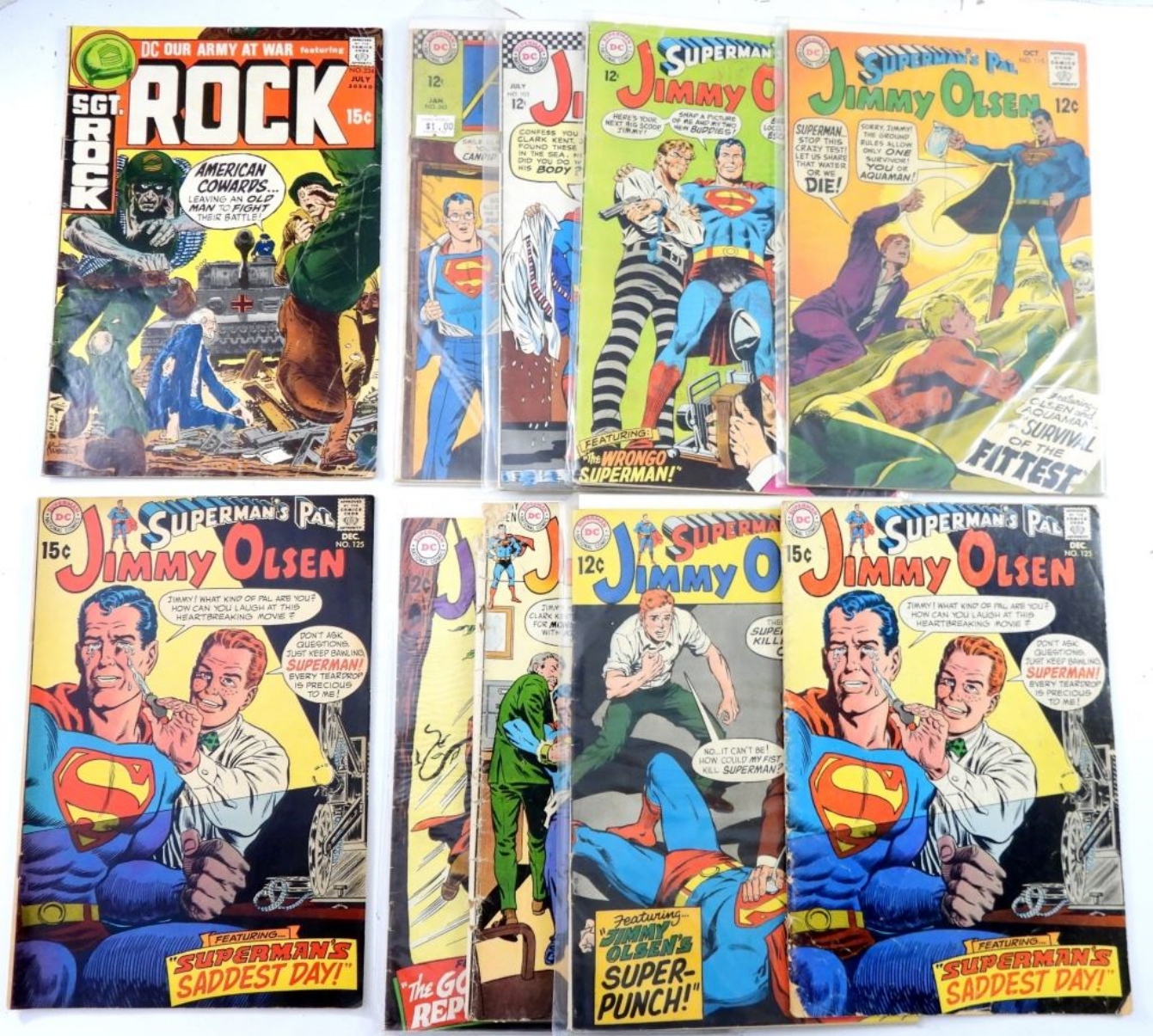 8 SUPERMAN’S PAL JIMMY OLSEN (12 & 15 cent). 1967 12c DC SUPERMAN. DC SGT. ROCK #234 15c. FAIR -GOOD