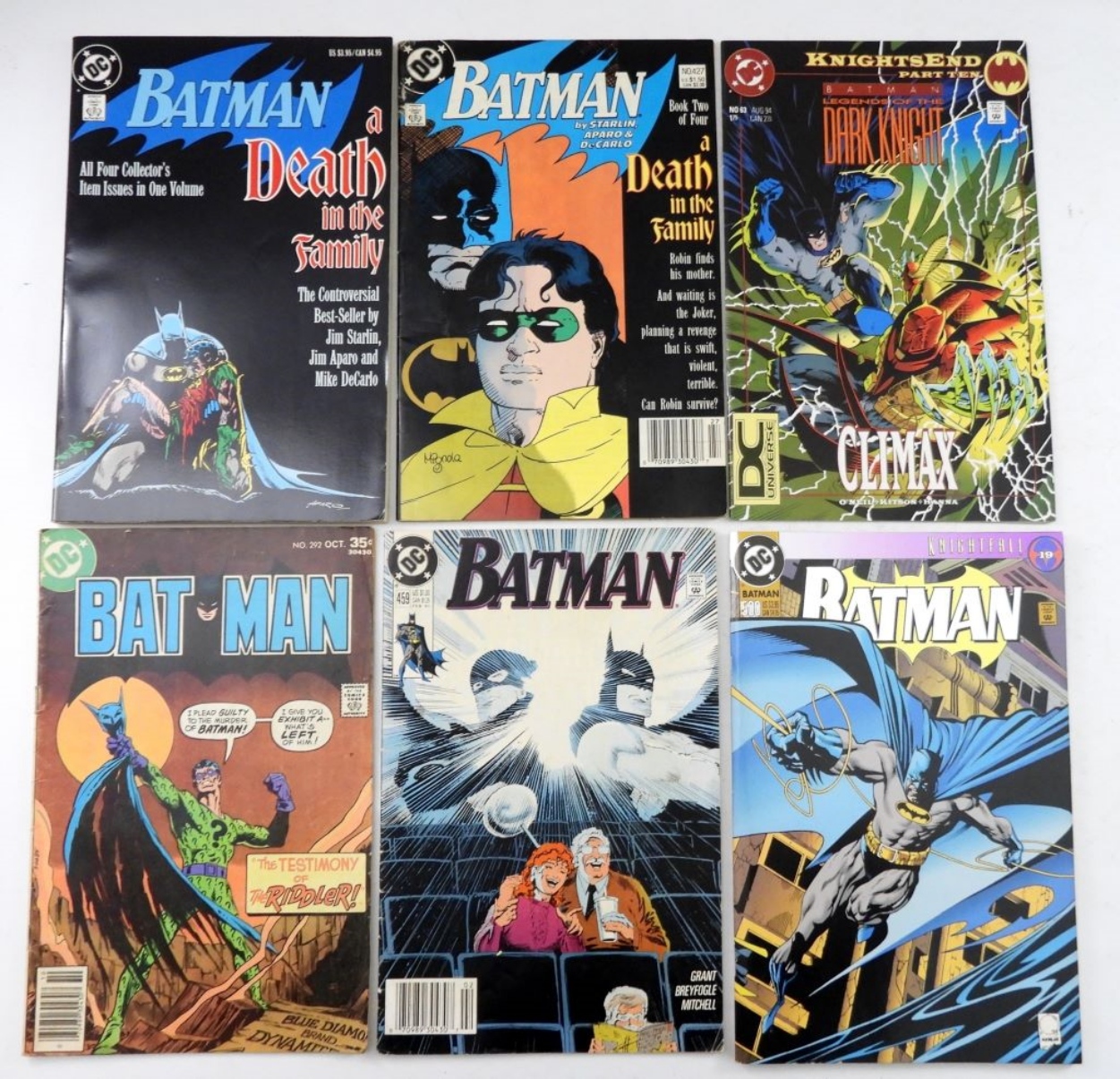 1988 BATMAN A DEATH IN THE FAMILY#1, (2)# 2,1977 BATMAN #292,1990 #459,1977BATMAN AND DEMON#137.2 1994 LEGENDS OF THE DARK KNIGHT #1,#63.(2) 1993 KNIGHTFALL BATMAN#19.1991 BATMAN#472.2015 BATMAN DAY #1.BATMAN VS