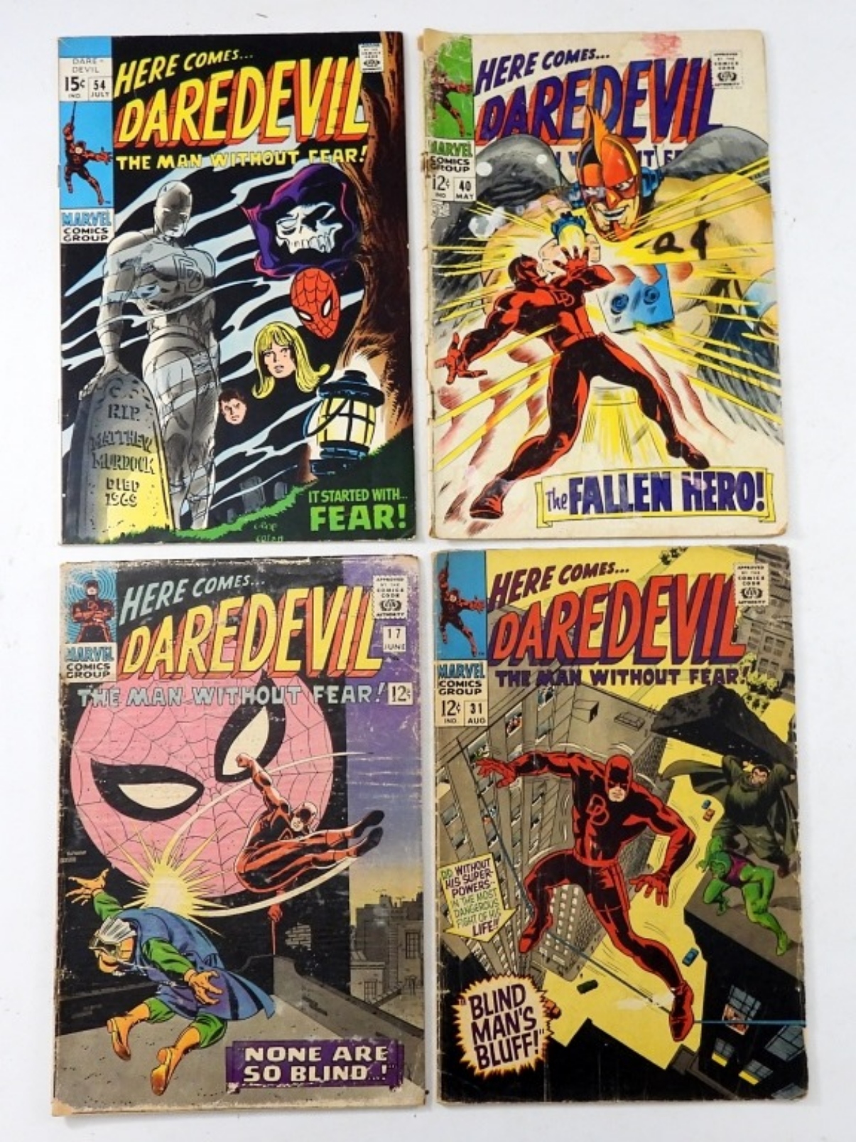 FOUR MARVEL DAREDEVIL 12 CENT COMICS. JUNE #17-POOR. AUG #31-FAIR. MAY #40-FAIR. JULY #54-VF.