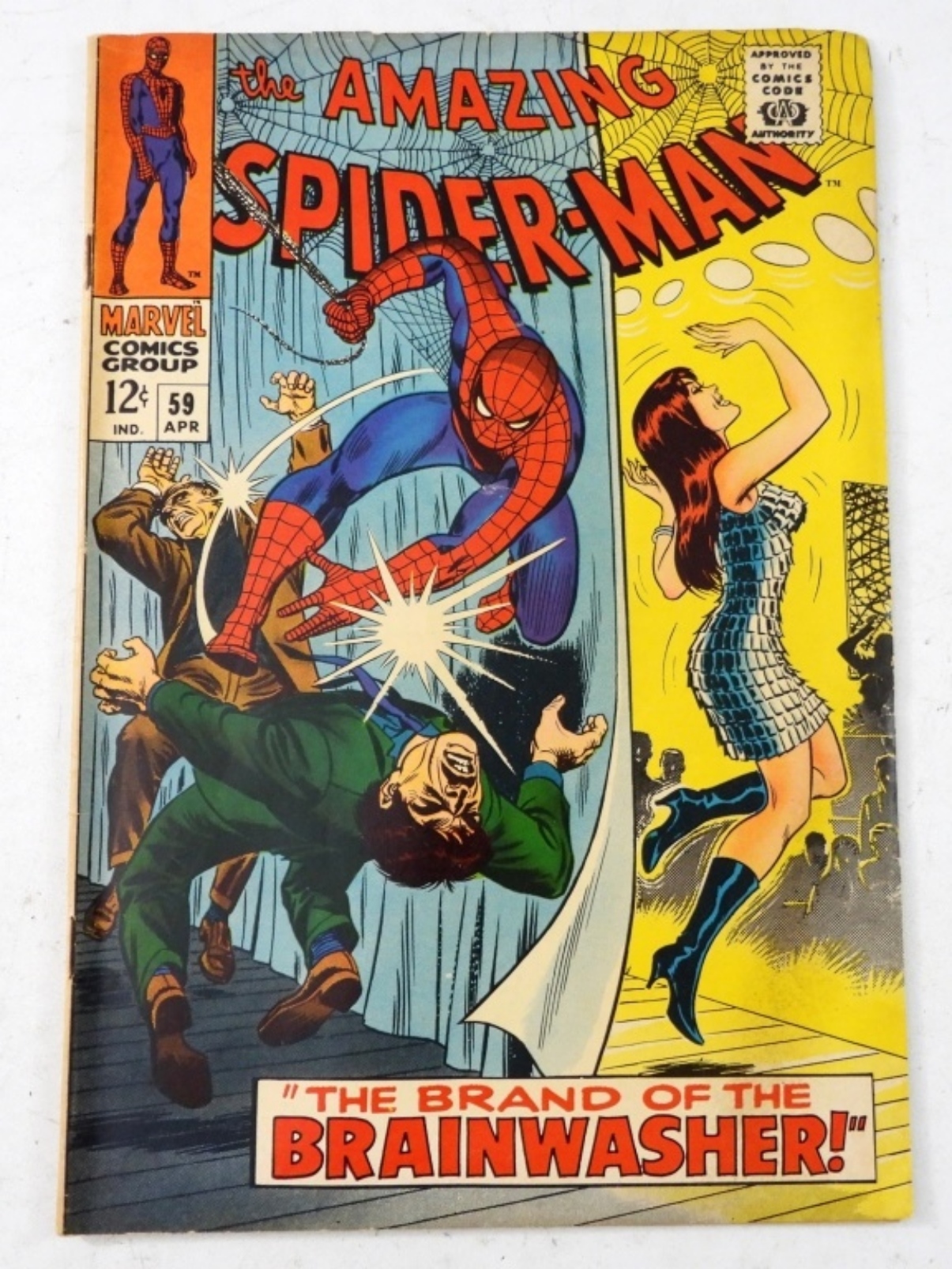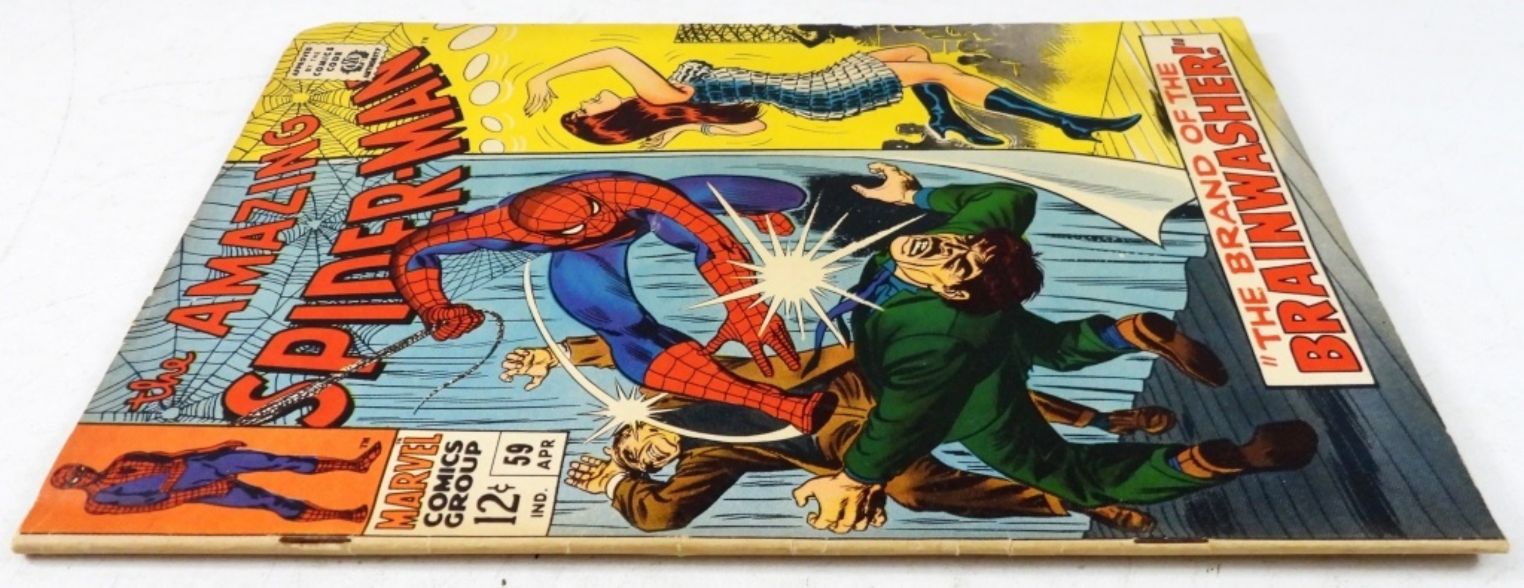 MARVEL THE AMAZING SPIDERMAN, APRIL #59 12 CENT COMIC IN VERY GOOD CONDITION.