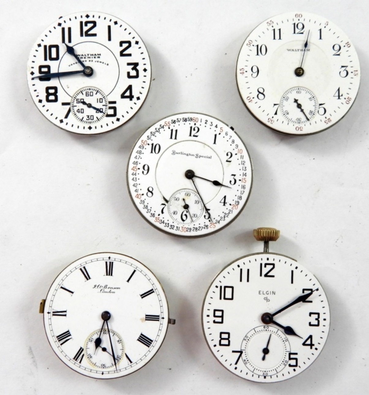 HV BENSON, LONDON; BURLINGTON SPECIAL, (2) WALTHAM (1) ELGIN – UNTESTED – PARTS / REPAIR