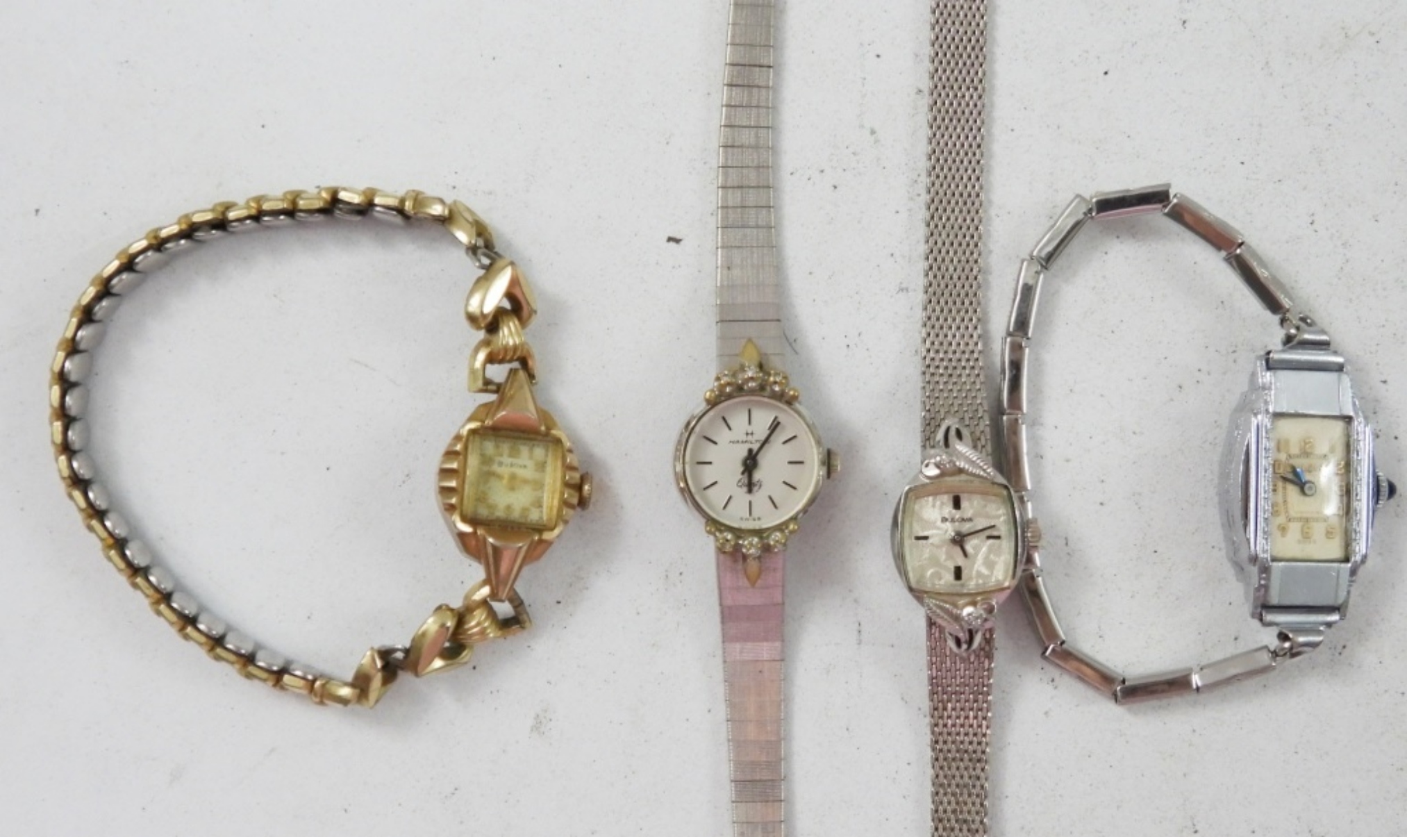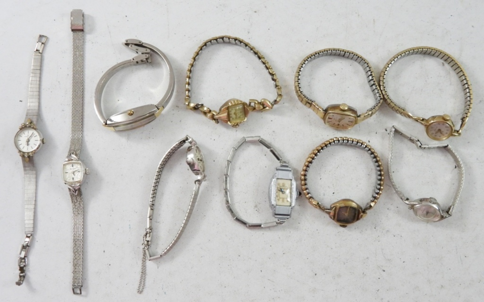 10 SMALL LADIES WATCHES(5) BULOVA,(2)BENUS,(3) HAMILTON. NOT TESTED AS TO WORKING OR NOT