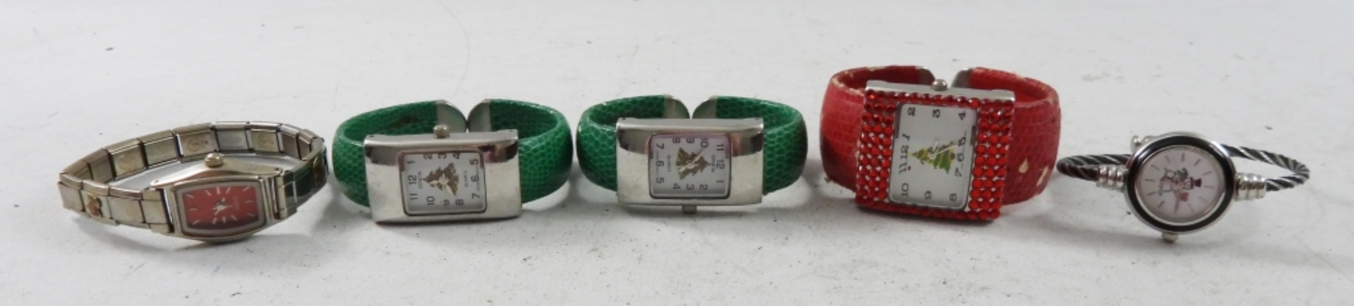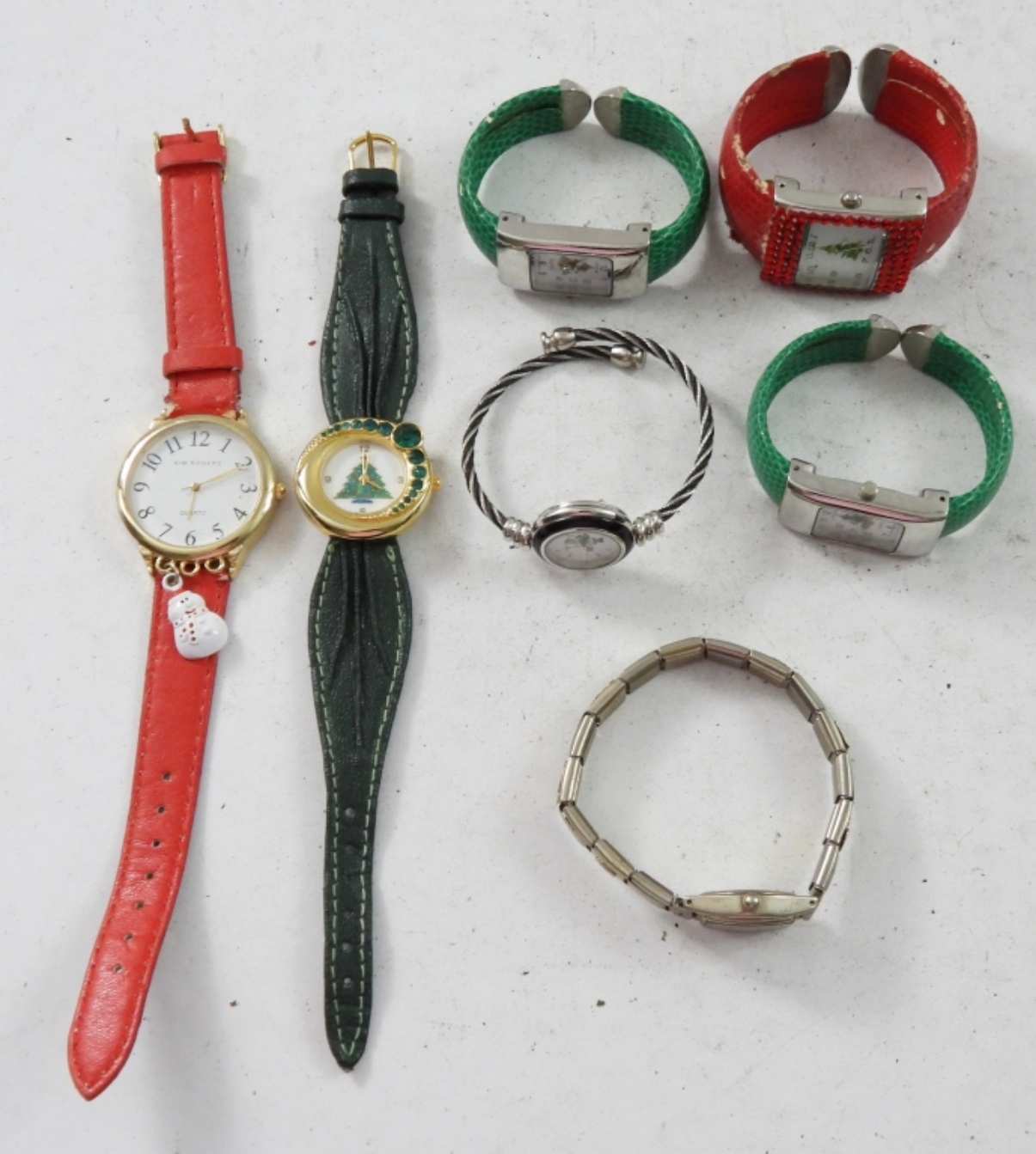 7 HOLIDAY LADIES WATCHES,(4)BANGLE ,(2) LEATHER ,(1)STRECHY. NOT TESTED AS TO WORKING OR NOT