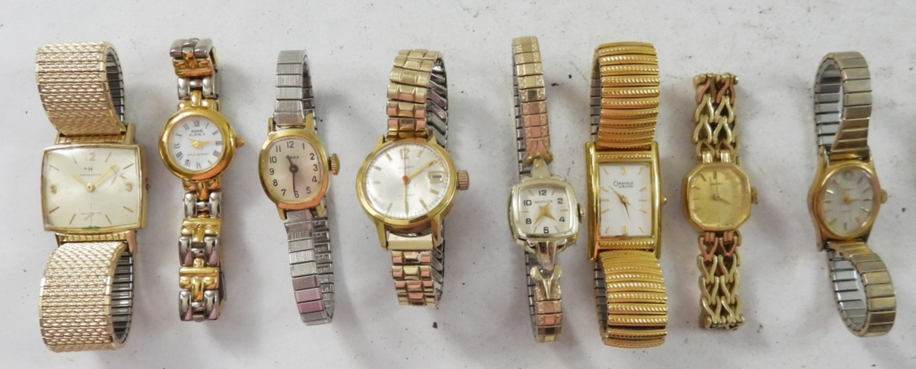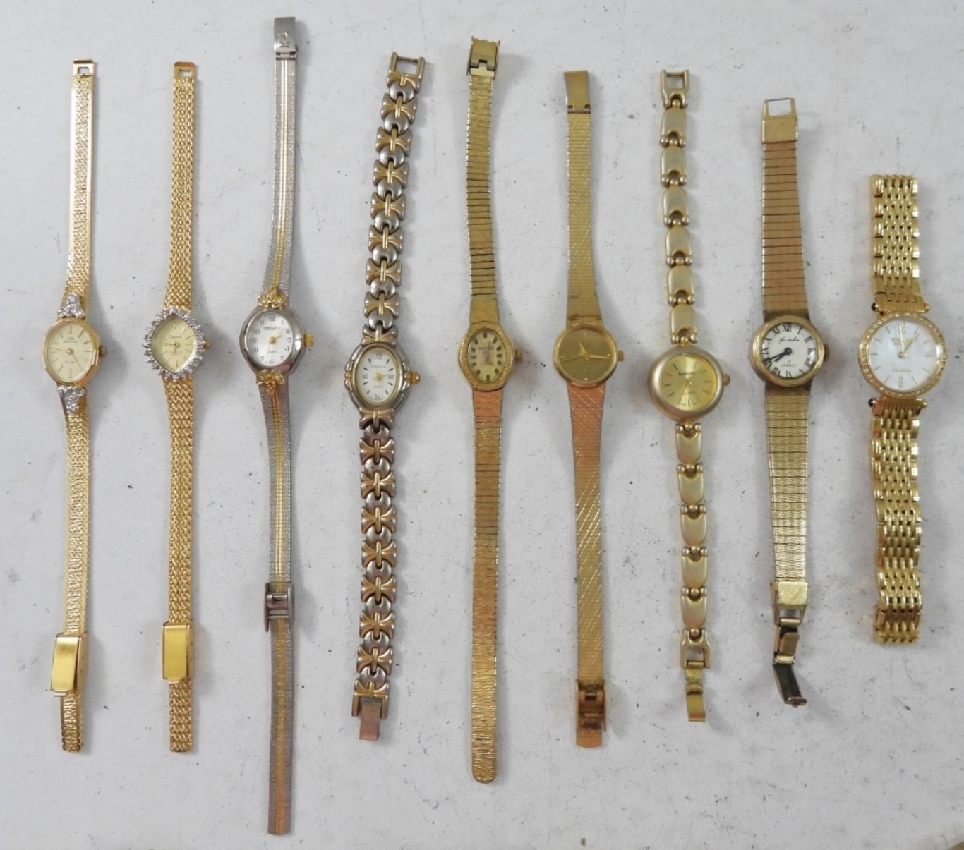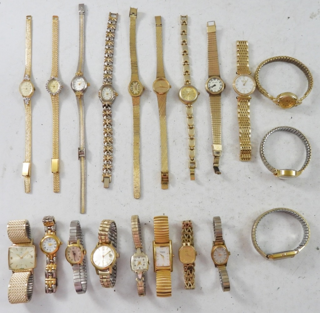 20 GOLD TONE LADIES WATCHES(11) CLASP BAND,(9) STRECHY BAND. NOT TESTED AS TO WORKING OR NOT