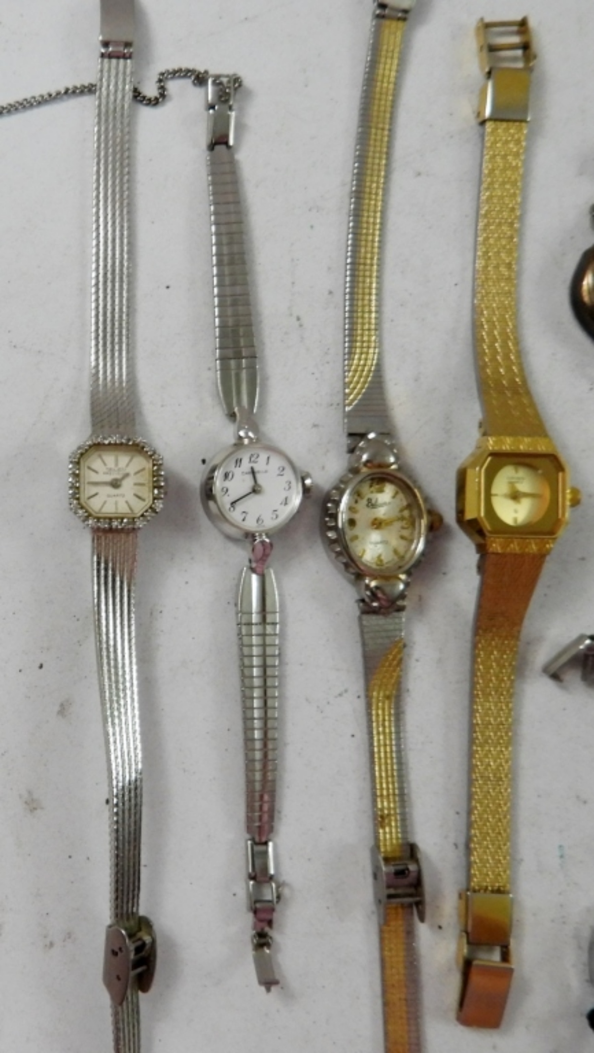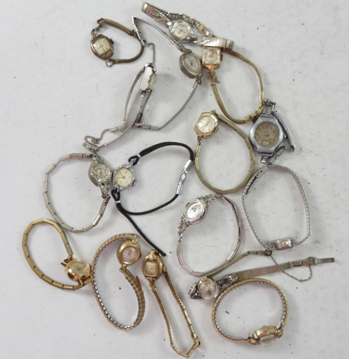 20 LADIES VINTAGE SMALL FACE WATCHES . GOLD AND SILVER TONE. VARIOUS BAND. NOT TESTED AS TO WORKING OR NOT