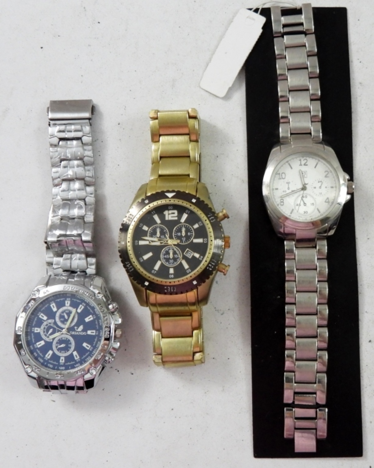 3 CHRONOGRAPH NESA WATCHES .2 SILVERTONE 1 GOLD TONE. NOT TESTED AS TO WORKING OR NOT