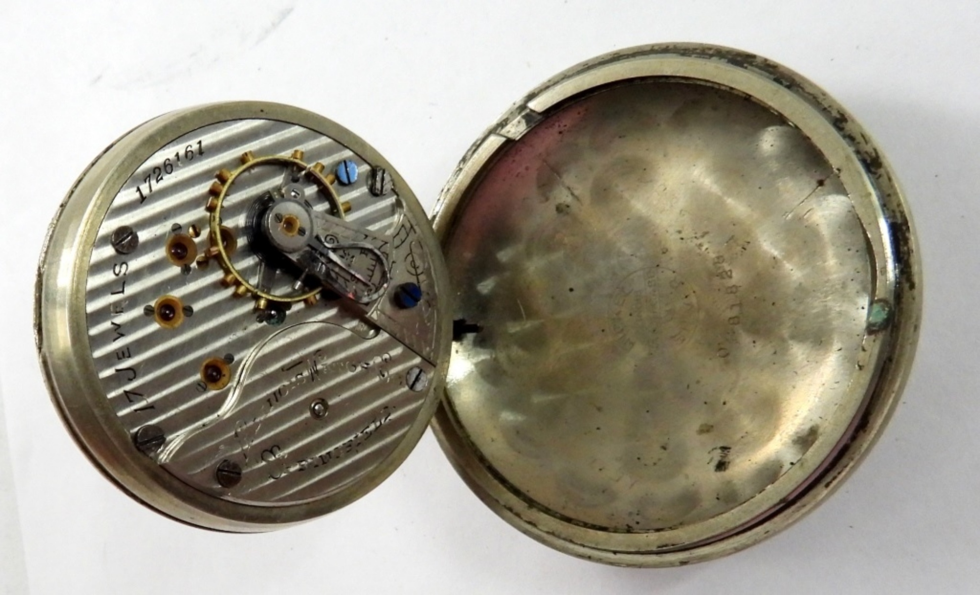 1905 ILLINOIS POCKET WATCH ,18 SIZE (SER#1726161) GRADE:62, JEWELS:17 . NOT WORKING