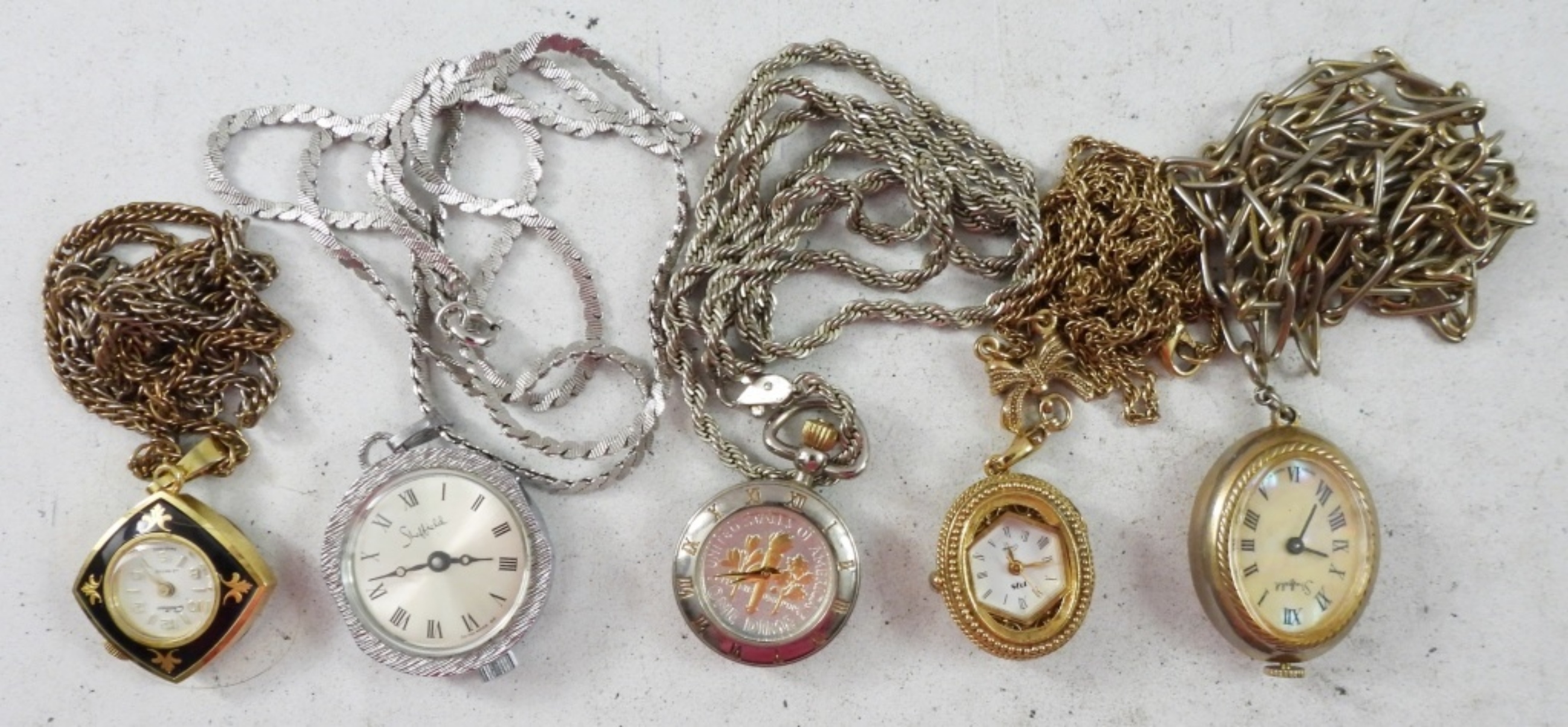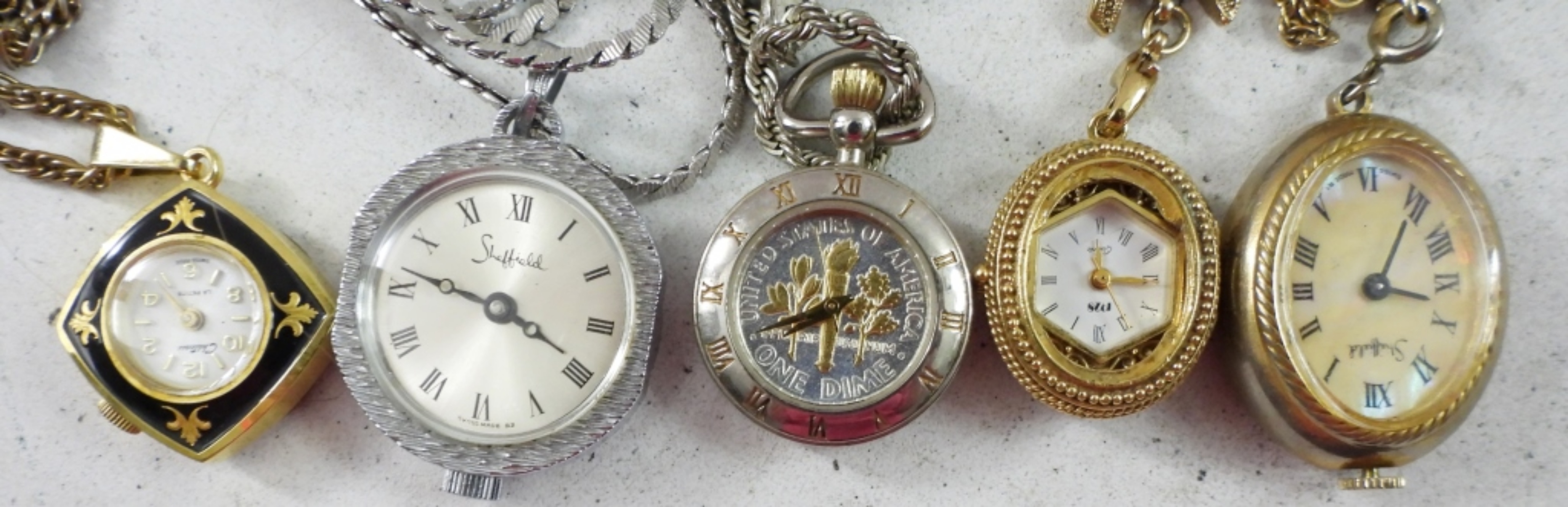 NOT TESTED AS TO WORKING OR NOT SILVER/GOLD TONE ALL COME WITH CHAIN NECKLACE