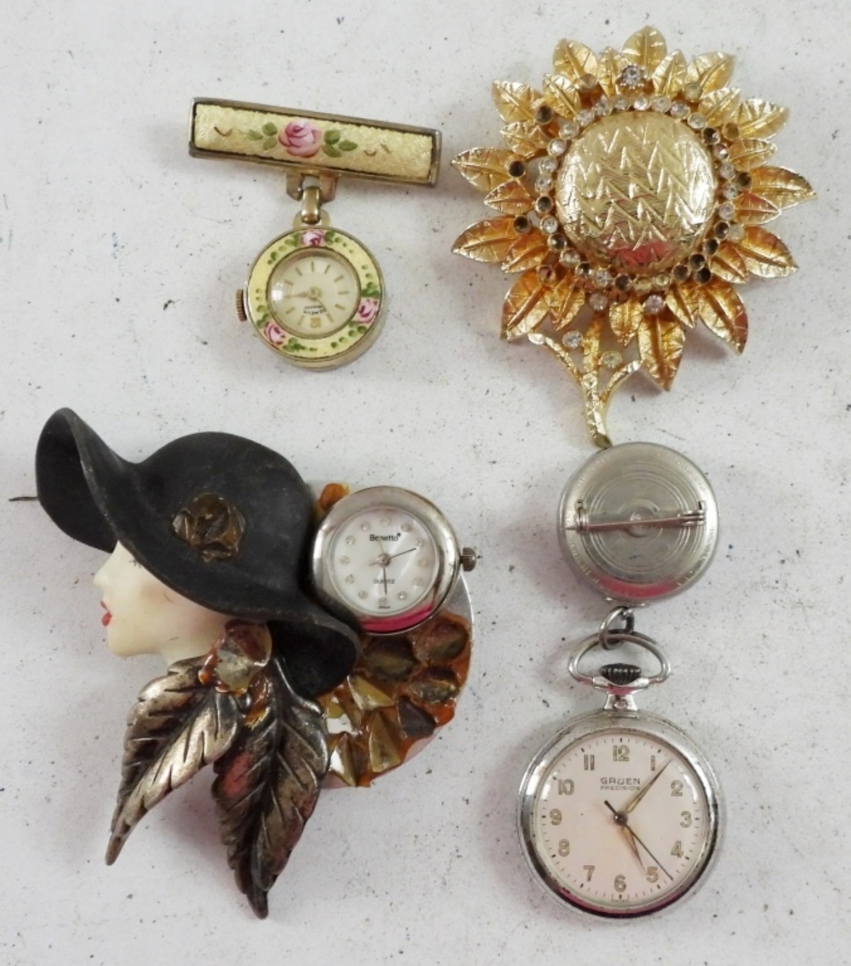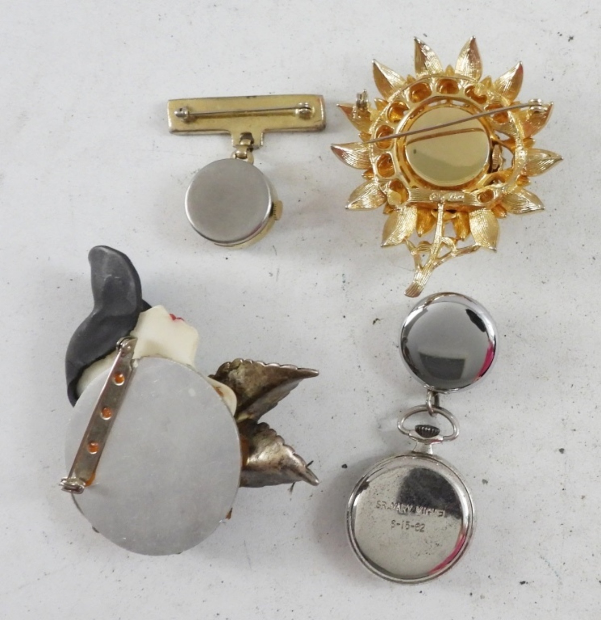 4 VINTAGE LADIES ELECTRIC MIX OF WATCH PINS .NOT TESTED AS TO WORKING OR NOT