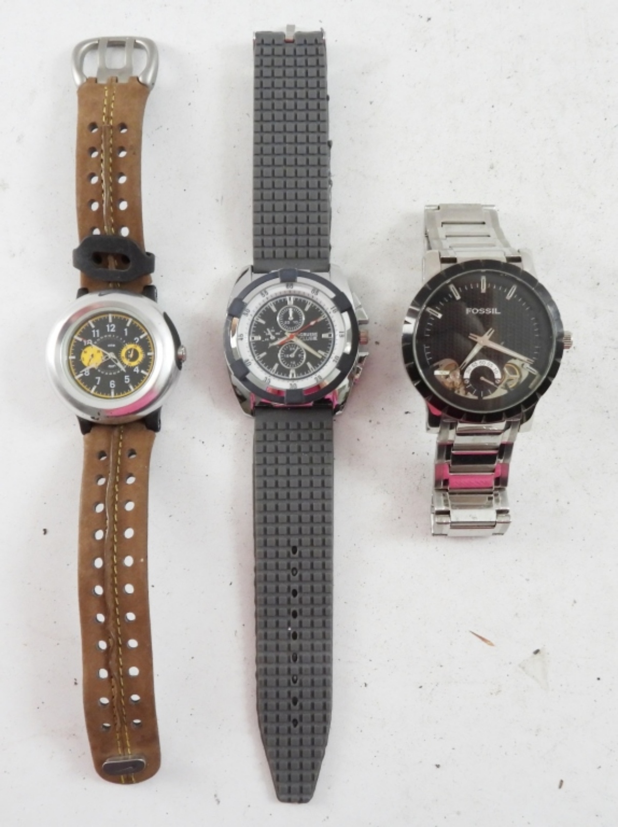 3 MENS CHRONOGRAPH FASHION WATCHES. NOT TESTED AS TO WORKING OR NOT