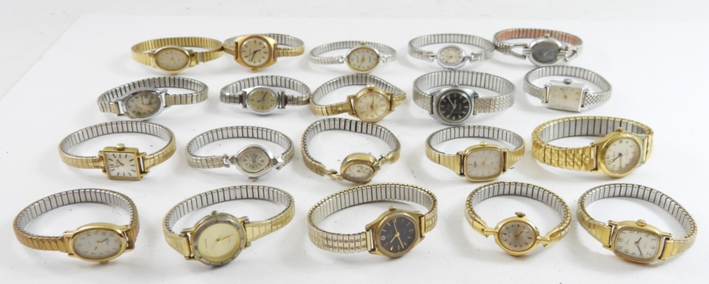 20 SMALL LADIES WATCHES 12 GOLD TONE ,8 SOLVER TONE .ALL WUTH STRETCHY BANDS. NOT TESTED AS TO WORKING OR NOT