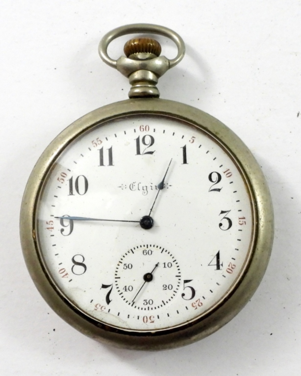 MENS 1900 ELGIN 16 SIZE POCKET WATCH ( SER#8906276) 7 JEWELS, GRADE 211. WORKING .NEEDS SERVICE