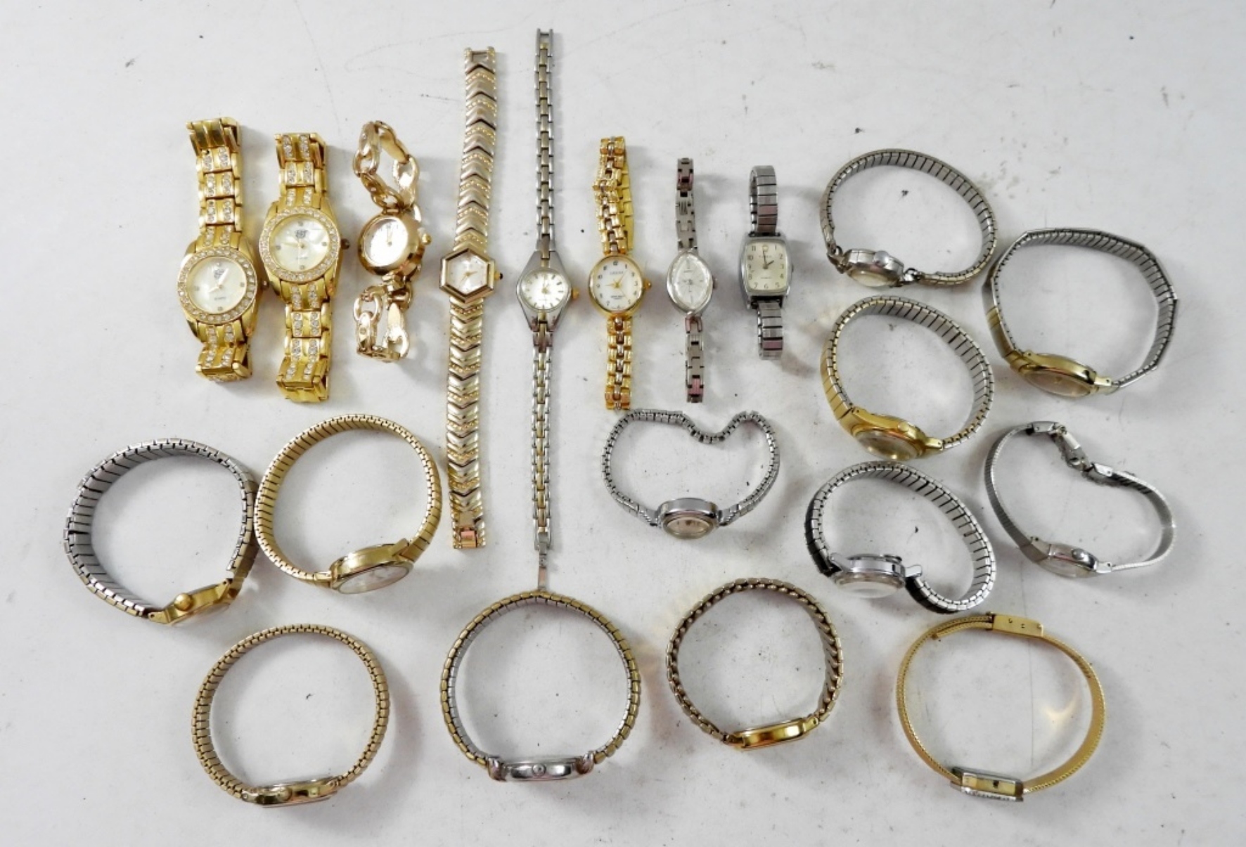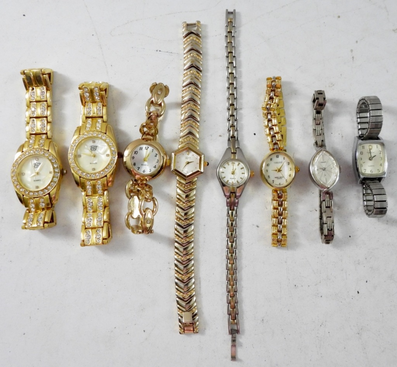 (7) QUARTZ,(1)SEIKO,(2)CITIZEN,(10) TIMEX ,BEAUTIFUL FASHION WATCHES ,BOTH GOLD AND SILVER TONE .”NOT TESTED AS TO WORKING OR NOT”