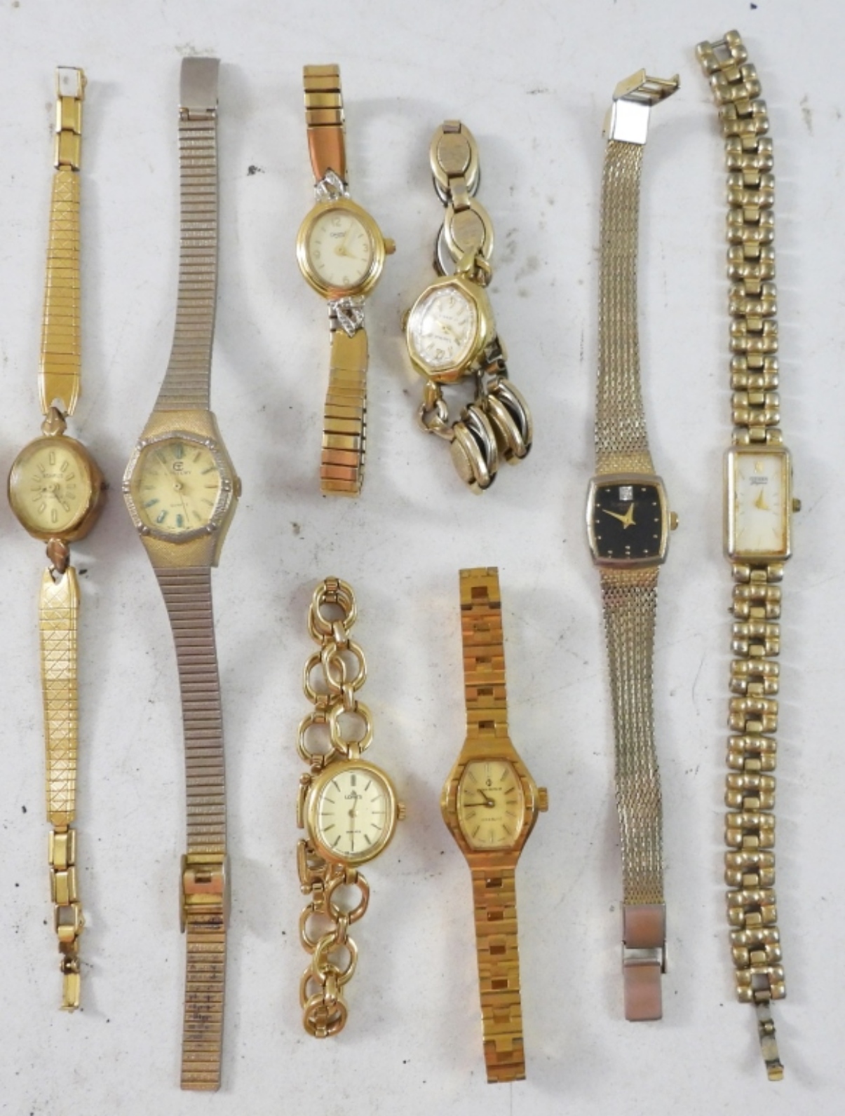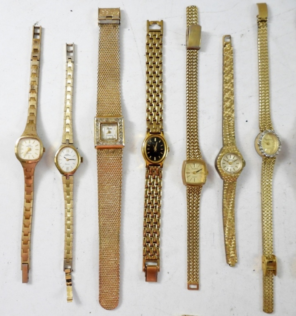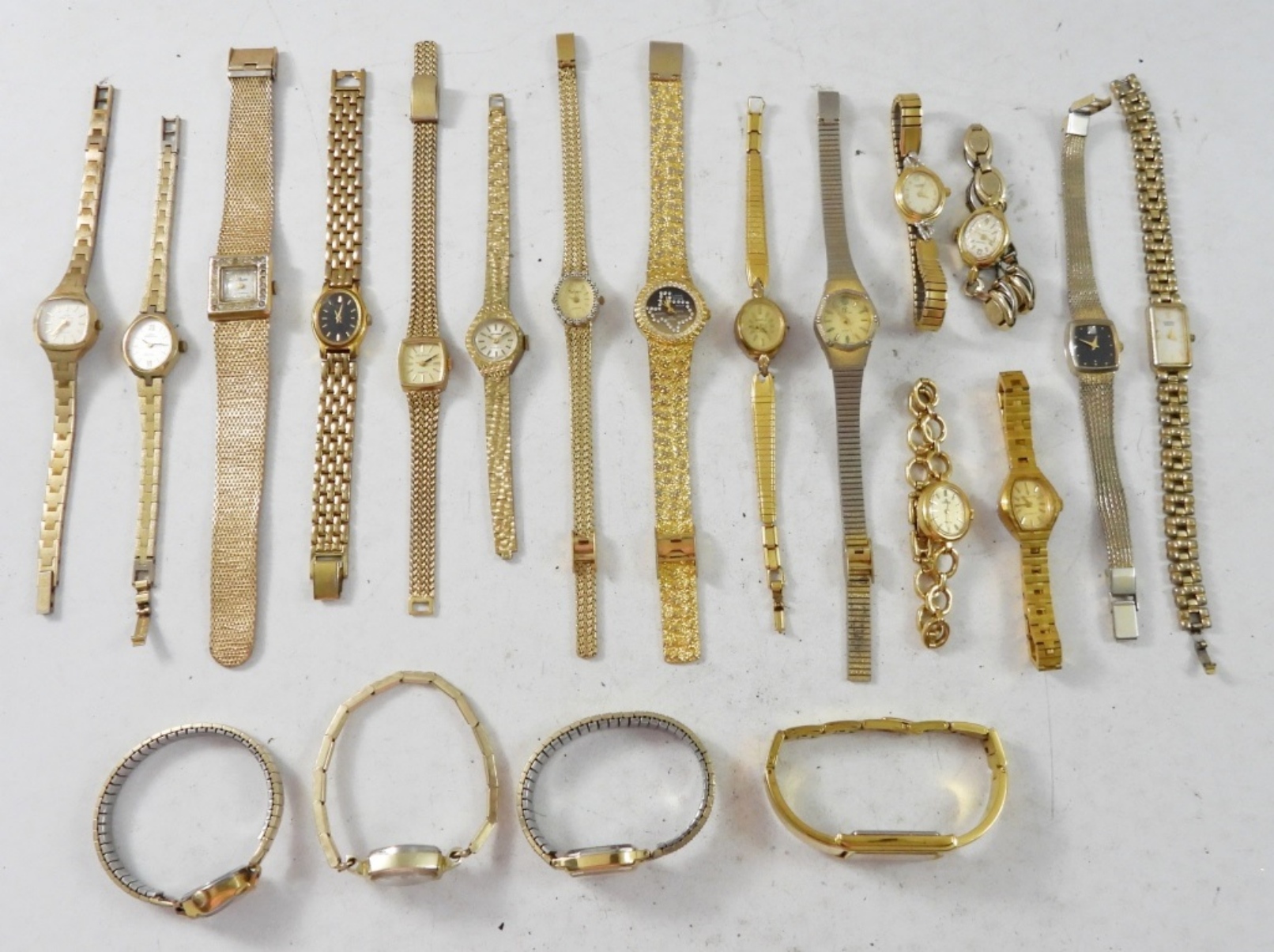 20 GOLD TONE FASHION SMALL LADIES WATCHES.VARIOUS BANDS .”NOT TESTED AS TO WORKING OR NOT”