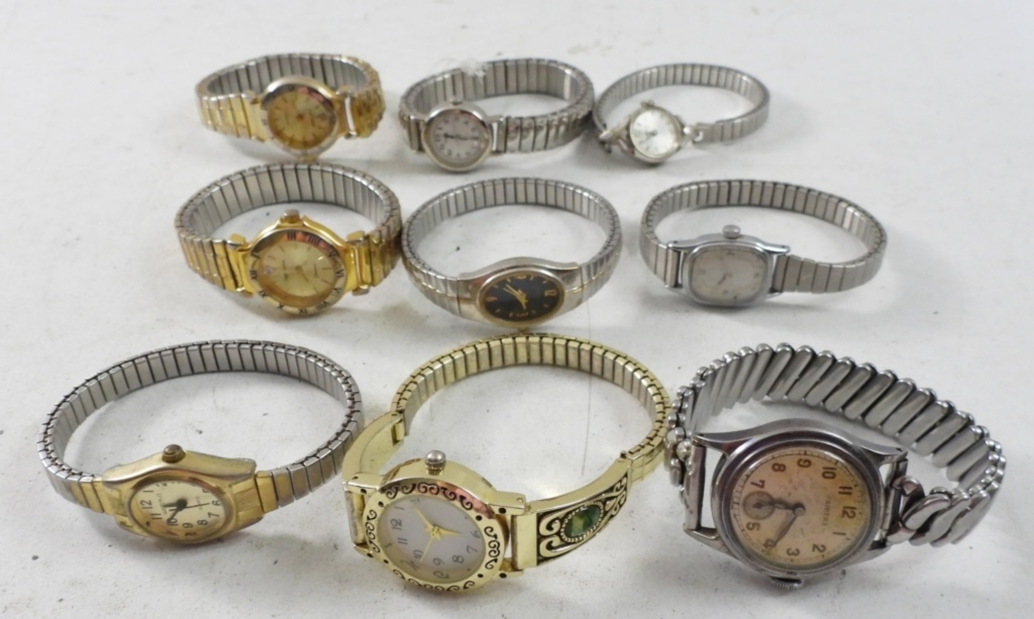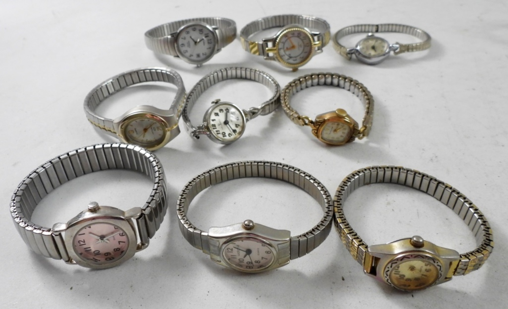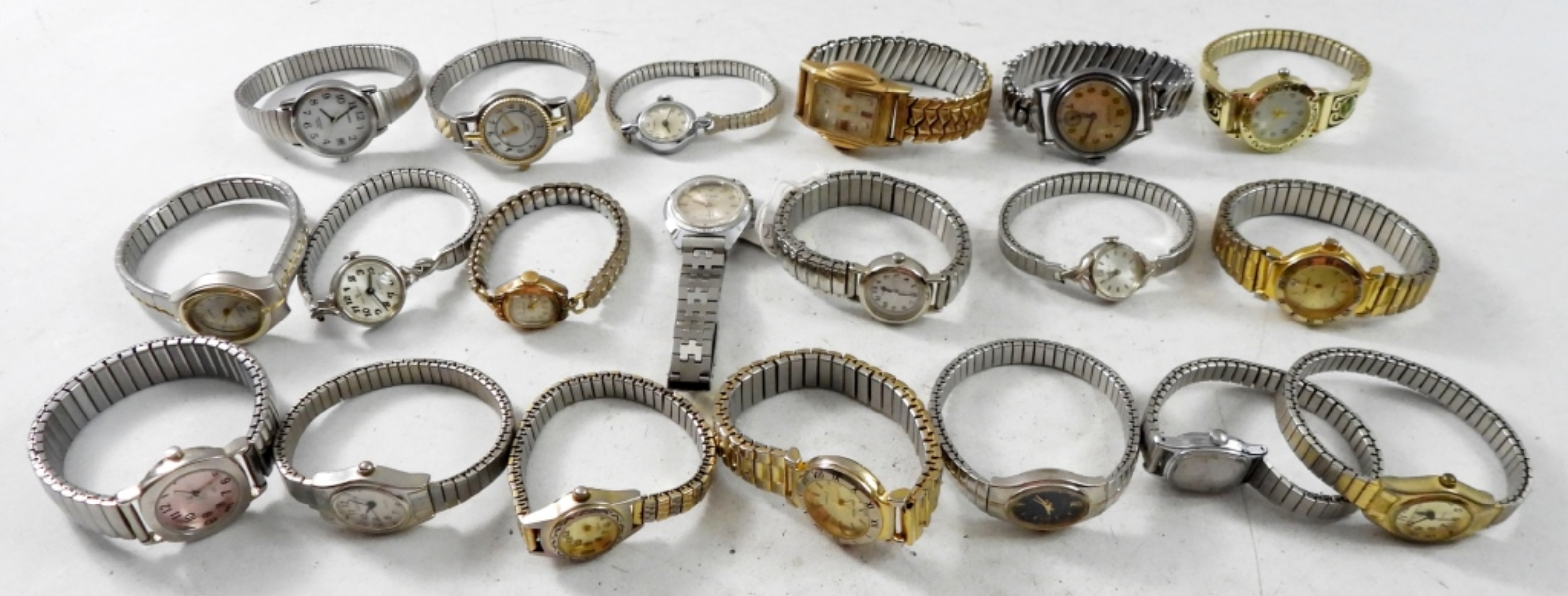 20 STYLISH LADIES WATCHES WITH STRETCHY BANDS ,GOLD & SILVER TONE . NOT TESTED AS YO WORKING OR NOT