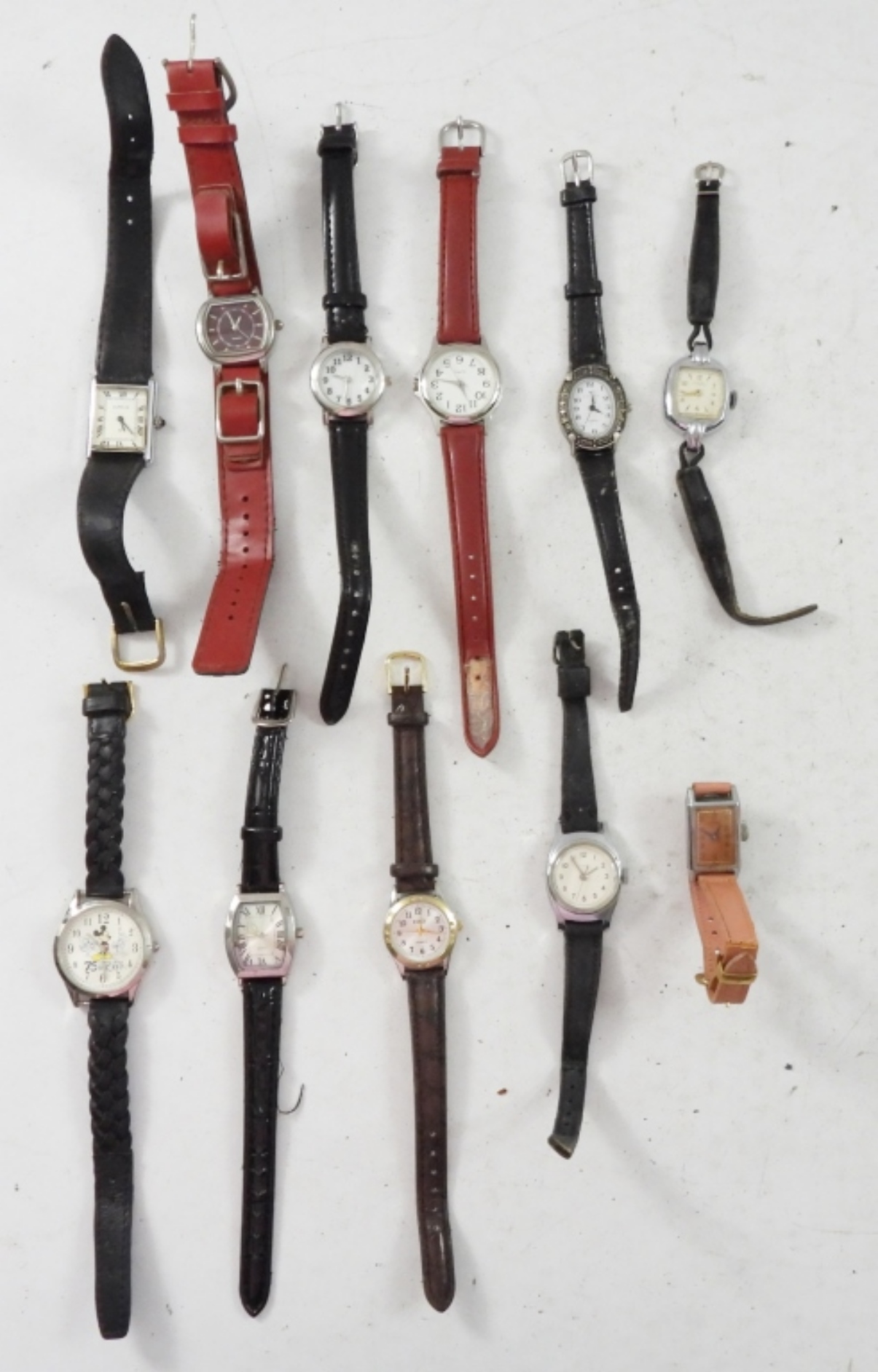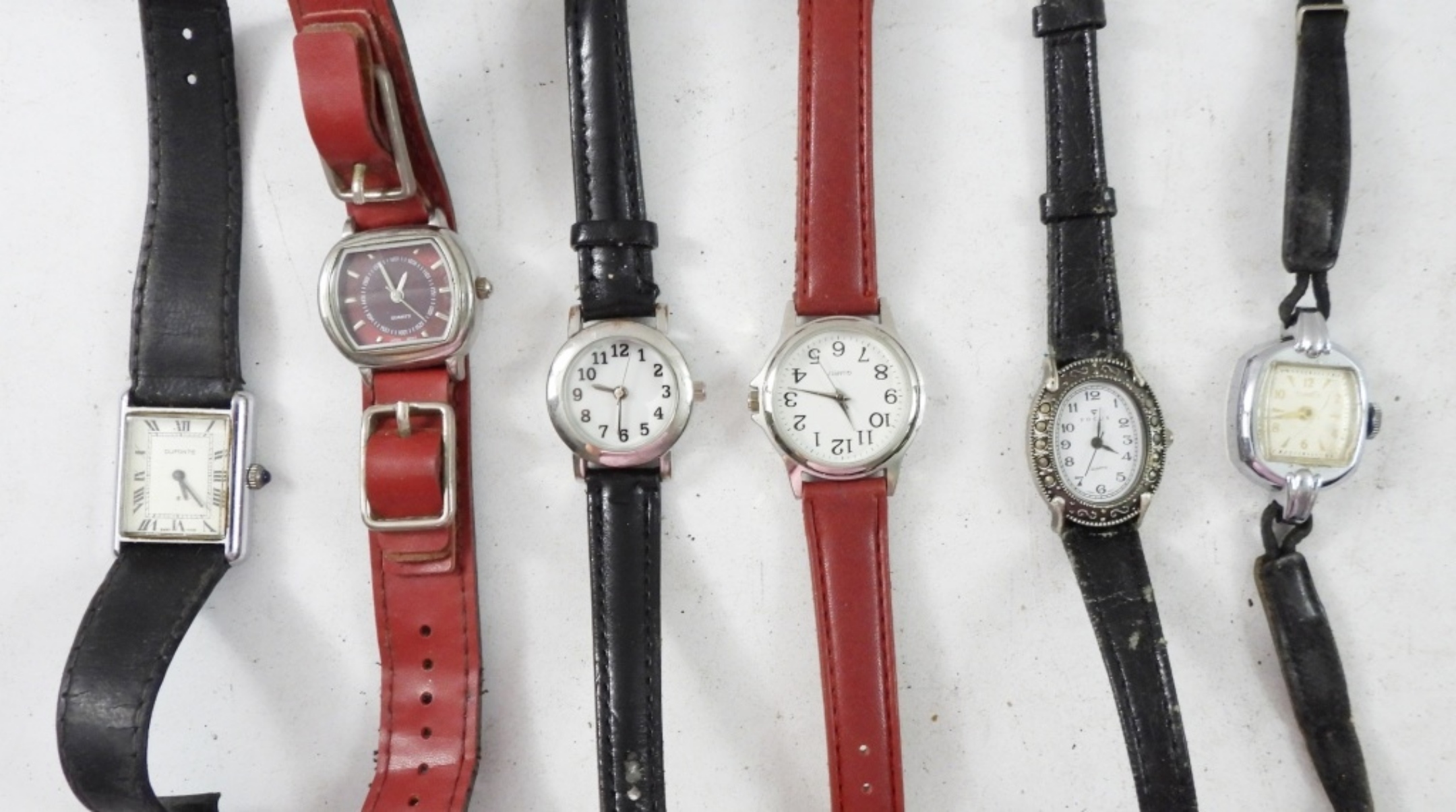 11 SILVER TONE FACE LADIES WATCHES WITH LEATHER BANDS