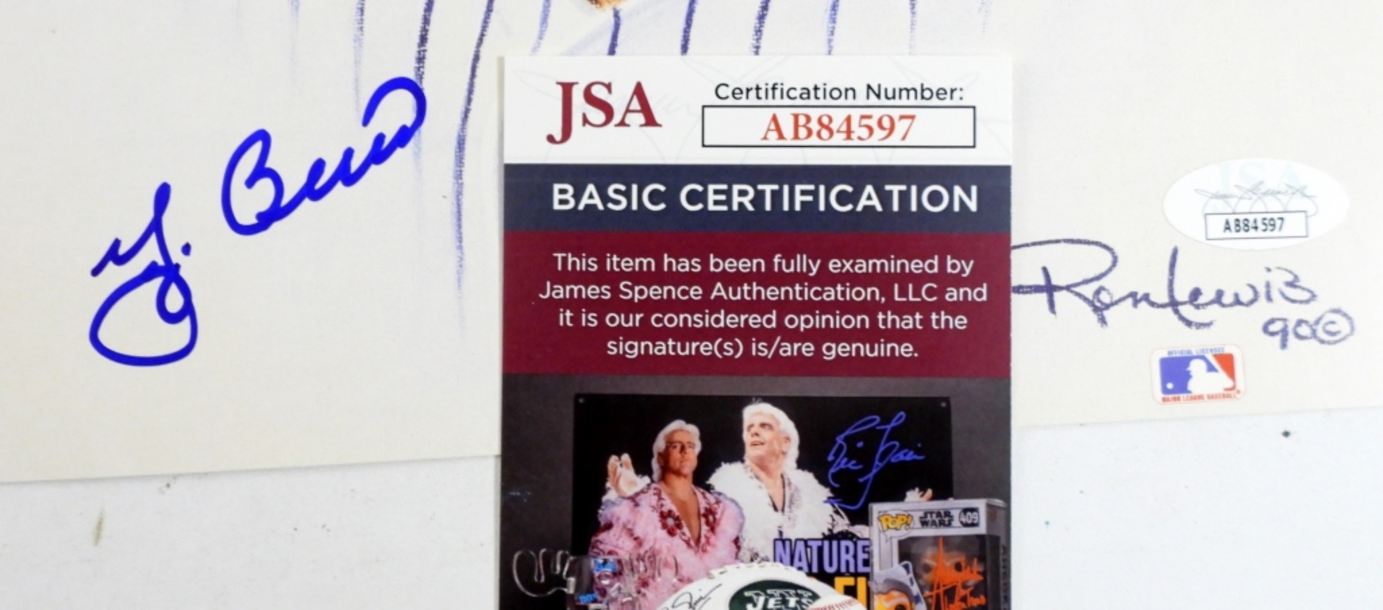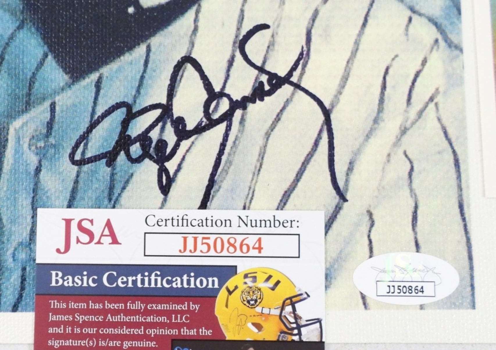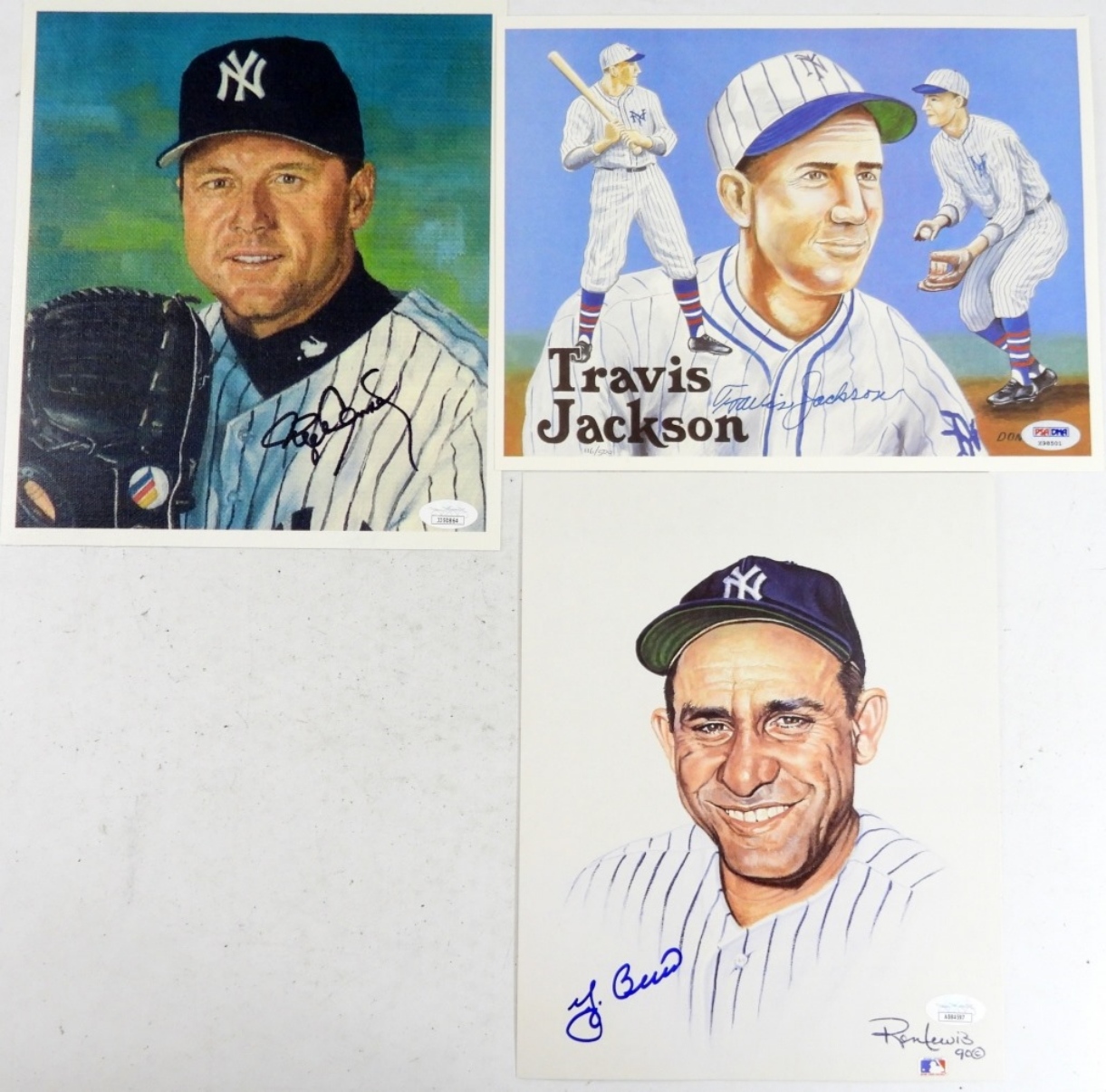 YOGI BERRA SIGNED, JSA COA #AB84597. TRAVIS JACKSON SIGNED, PSA/DNA COA #X98501. ROGER CLEMENS SIGNED, JSA COA #JJ50864.