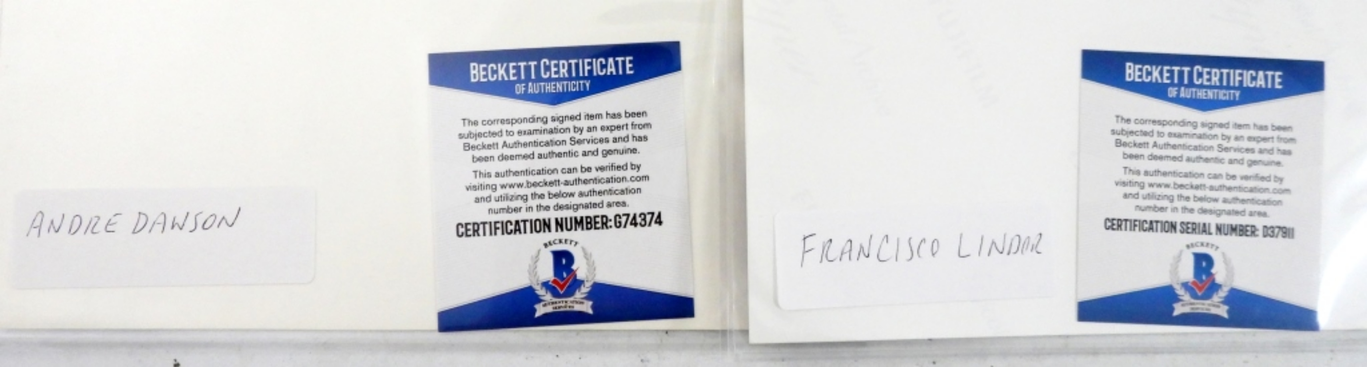 ALL HAVE BECKETT COA’s. JACKSON CHOURIO-#W273333. WANDER FRANCO-#F23349. BO BICHETTE-#BL89559. ANDRE DAWSON-#G74374. FRANCISCO LINDER-#D37911.