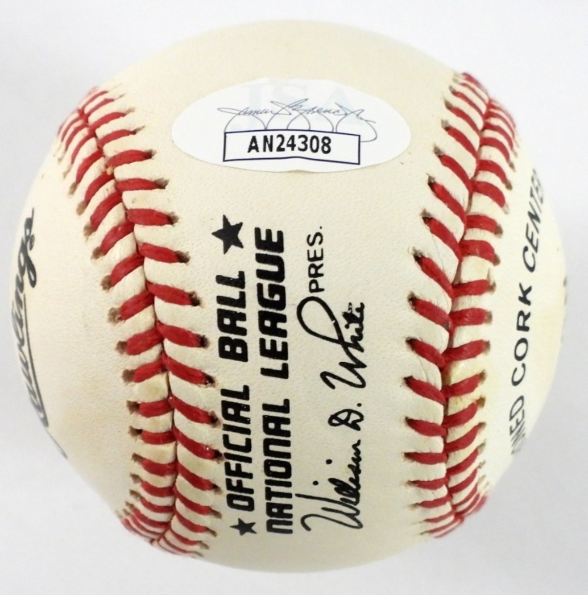 MAURY WILLS #30 LA DODGERS AUTOGRAPHED BASEBALL IN CASE. JSA COA #AN24308 (STICKER ON THE BALL).