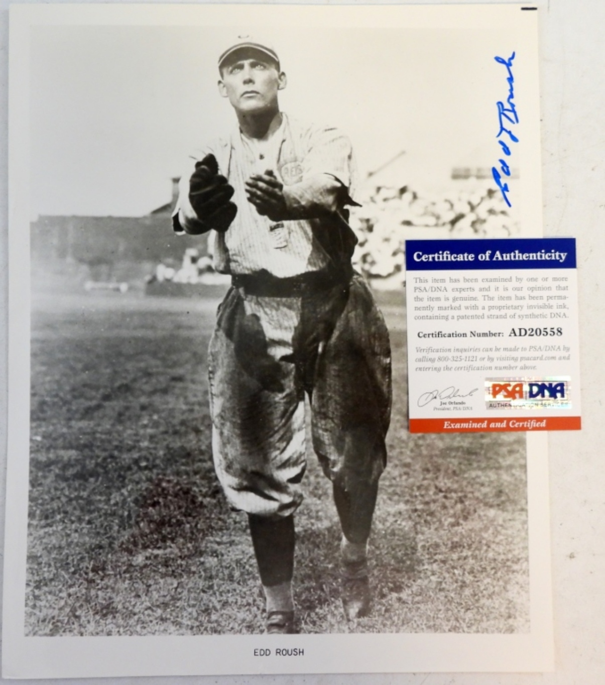 VINTAGE EDD ROUSH( CINCINNATI REDS ) AUTOGRAPHED BLACK AND WHITE PHOTO WITH JSA (AD20558)
