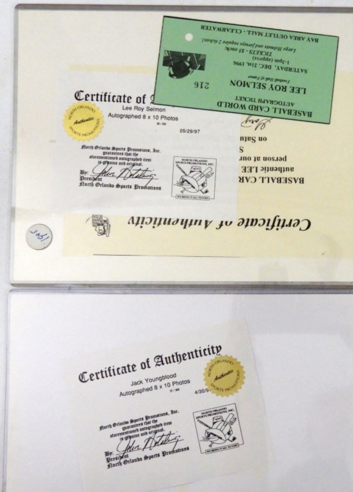 JACK YOUNGBLOOD AND LEE ROY SELMON BOTH WITH NORTH ORLANDO SPORTS PROMOTIONS COA