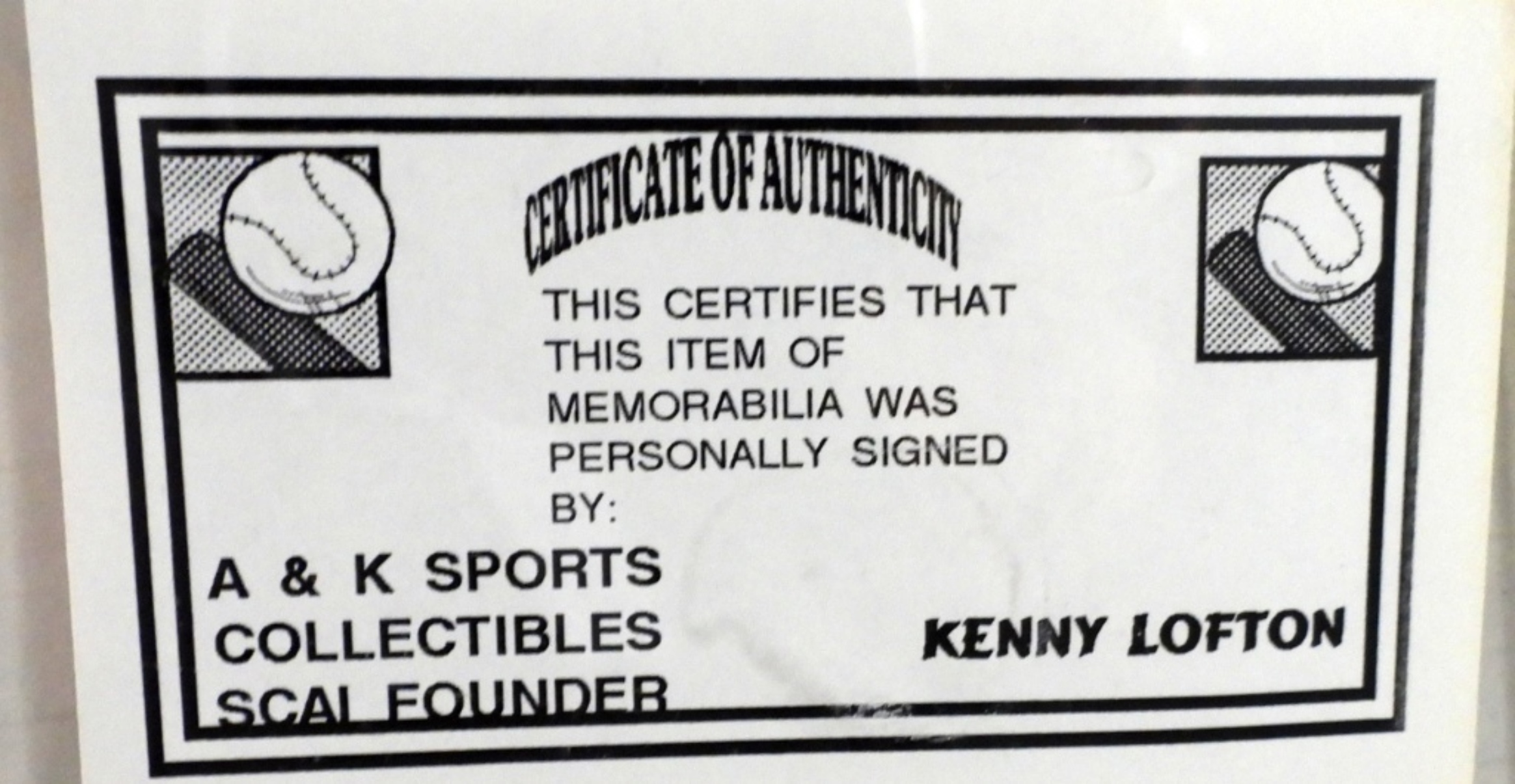 A&K SPORTS COLLECTIBLES COA