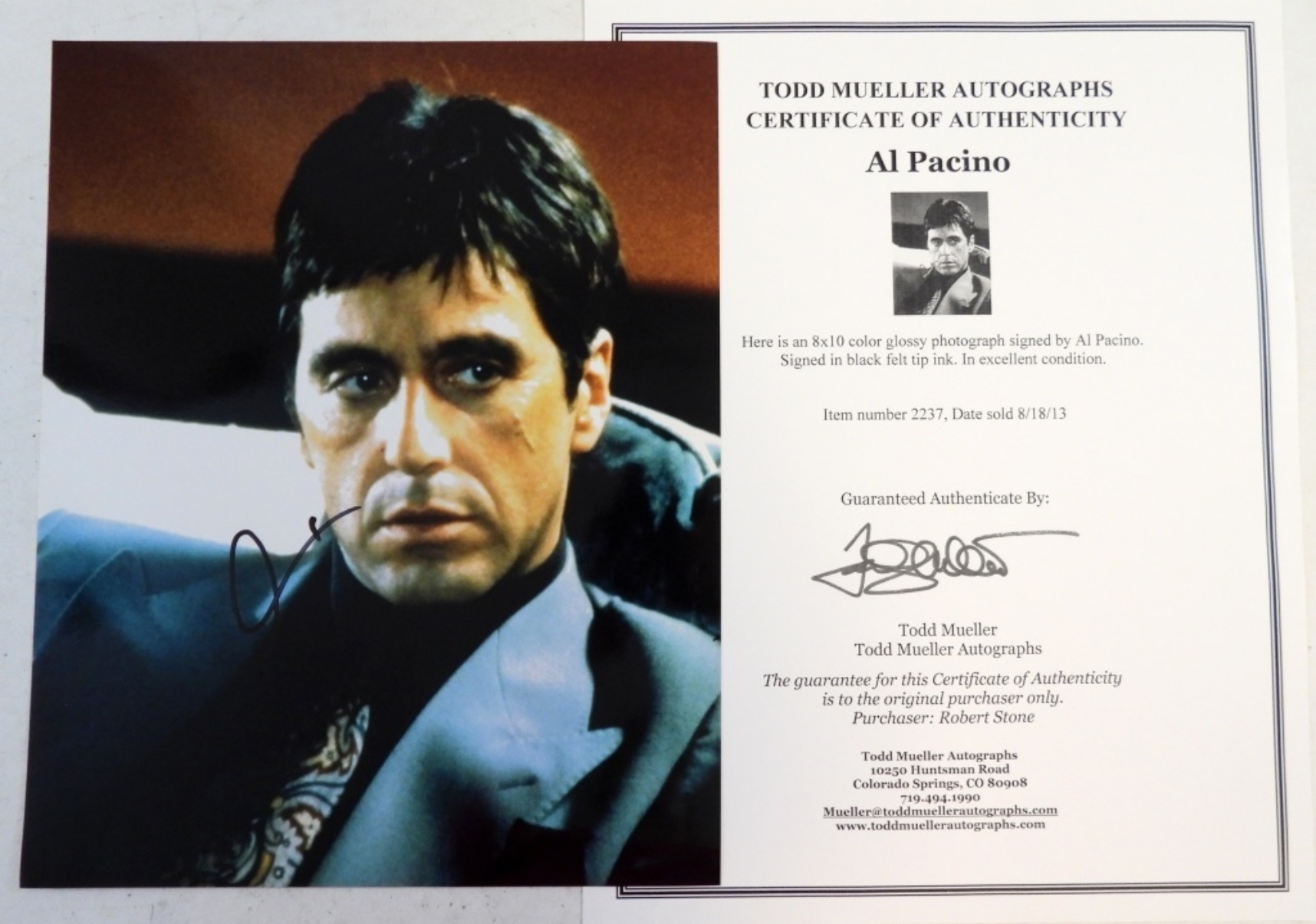 AL PACINO AUTOGRAPHED 8×10 PHOTO. TODD MEULER AUTOGRAPHS CERT OF AUTHENTICITY.