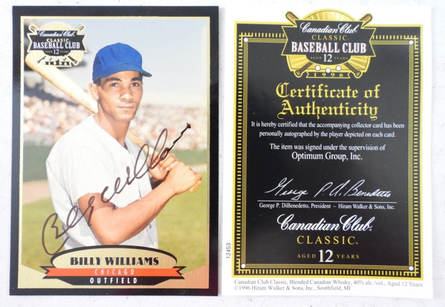 BILLY WILLIAMS SIGNED CANADIAN CLUB CARD with COA