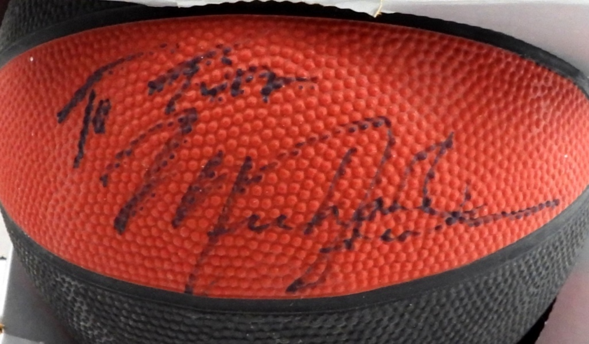 To TOM “MICHAEL JORDAN” – NO COA on SMALL WILSON BLACK & RED BALL in BOX