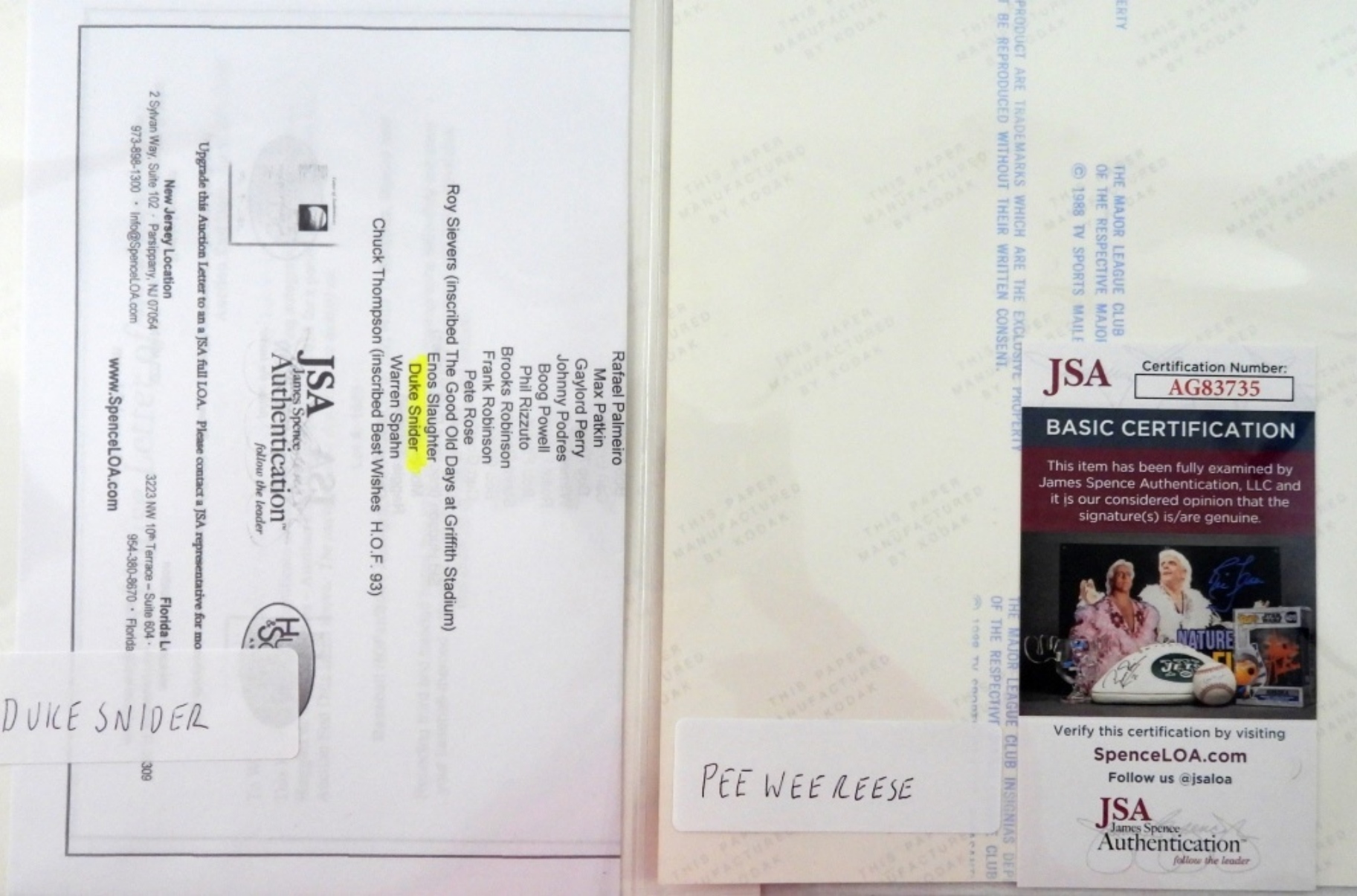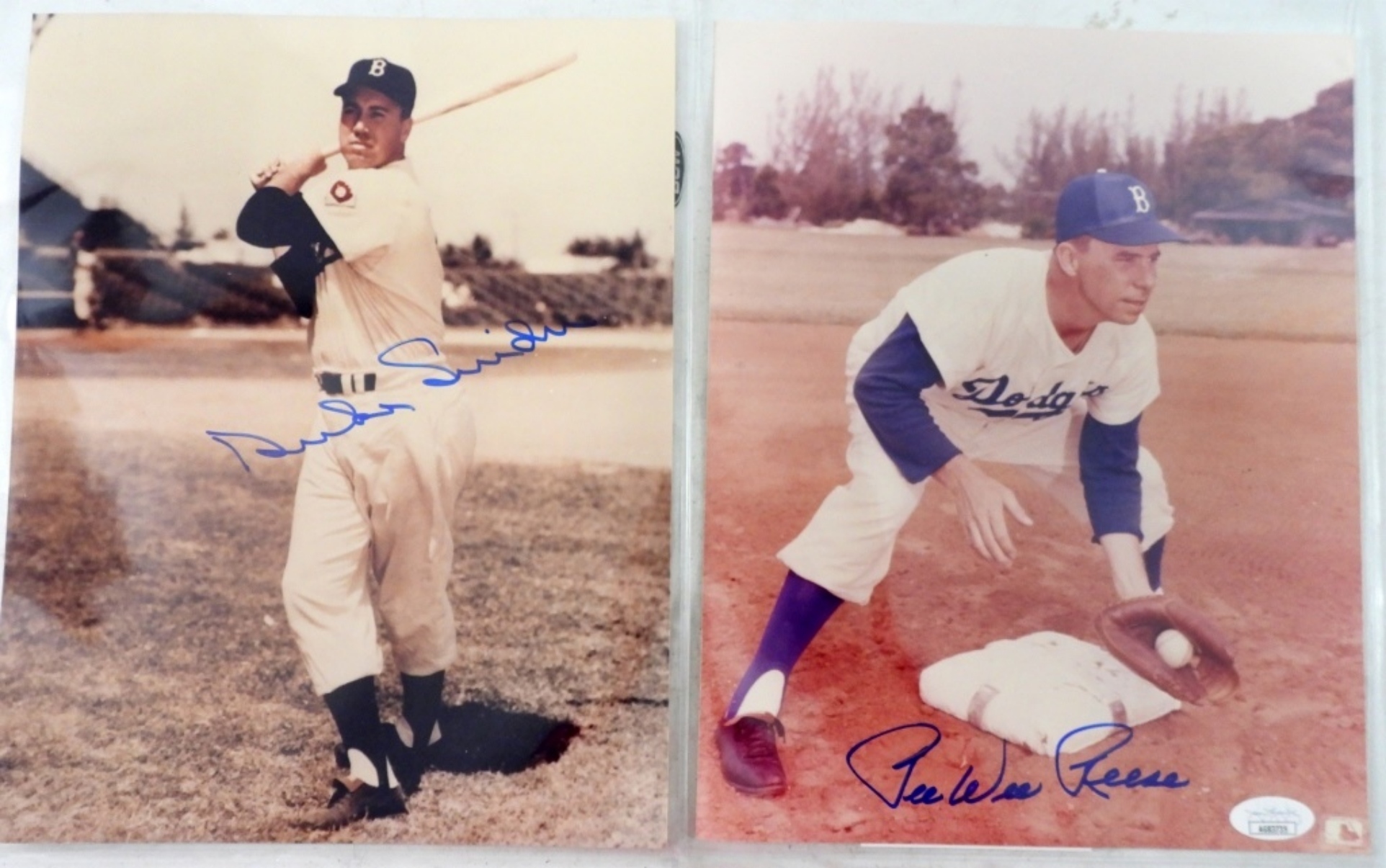 DODGERS PEE WEE REESE SIGNED 8X10 WITH JSA(AG83735) AND DUKE SNIDER SIGNED 8X10 WITH AUCTION LETTER OF AUTHENTICITY FROM JSA